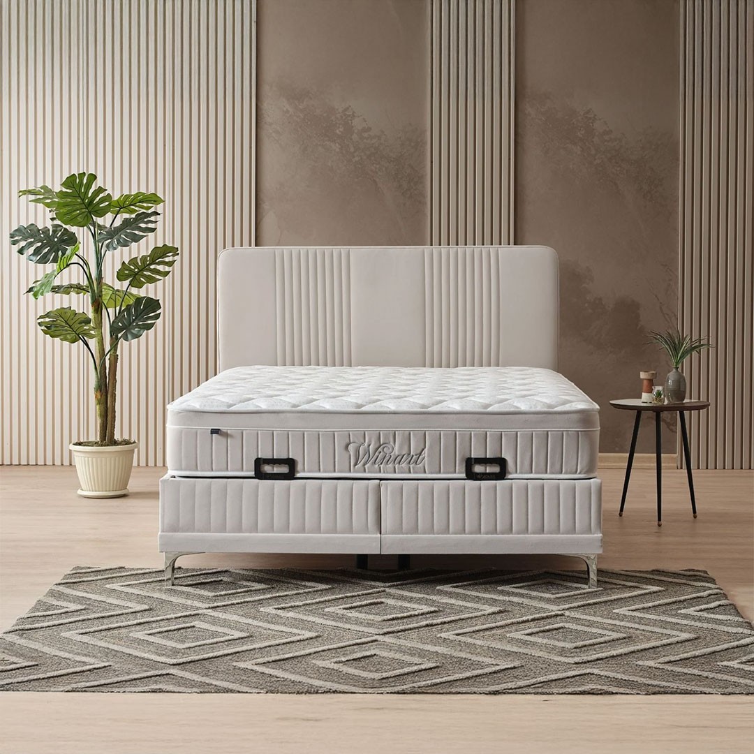 Το σετ περιλαμβάνει επίσης το ανατομικό στρώμα WINART, το οποίο προσφέρει κορυφαία στήριξη και άνεση χάρη στο σύστημα ανεξάρτητων ελατηρίων Pocket Spring, που αγκαλιάζει κάθε σημείο του σώματος και προσαρμόζεται στις κινήσεις σας κατά τη διάρκεια του ύπνου. Το ενσωματωμένο ανώστρωμα υψηλής πυκνότητας ενισχύει την απαλότητα, ενώ το υποαλλεργικό και διαπνέον ύφασμα του στρώματος εξασφαλίζει φρέσκια και υγιεινή αίσθηση όλη τη νύχτα.