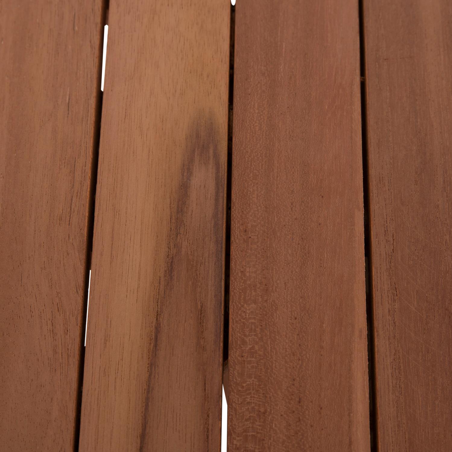 Η επιφάνεια είναι κατασκευασμένη από μασίφ ξύλο TEAK. Το ξύλο ΤΕΑΚ είναι ο πιο δημοφιλής τύπος σκληρού ξύλου. Είναι εξαιρετικά βαρύ, υψηλής αντοχής, ανθεκτικό στις καιρικές συνθήκες, ανθεκτικό στο σκέβρωμα και δεν αποσυντίθεται. Συχνά, τα νερά του ξύλου του είναι έντονα και σε ευθεία. Χρησιμοποιείται για πληθώρα κατασκευών εσωτερικού αλλά και εξωτερικού χώρου.