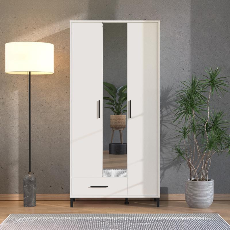 Έπιπλο εισόδου – Ντουλάπα ORKNEY OG 3K1F3V με Καθρέπτη Λευκό 93x40x193εκ.