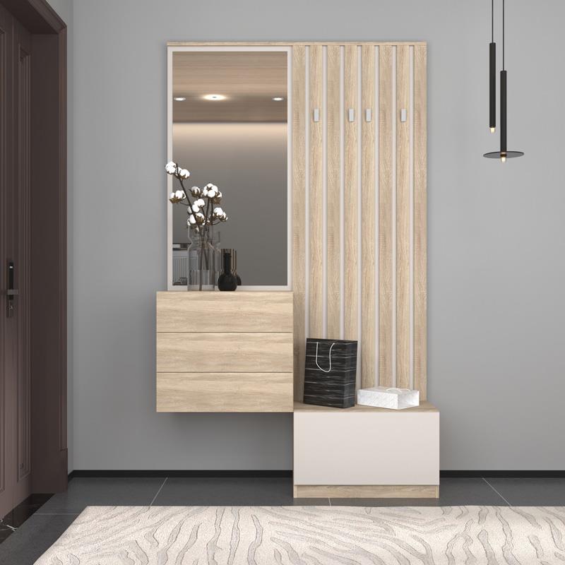 - Συνδυάζει καθρέφτη, κρεμάστρα και αποθηκευτικό χώρο, προσφέροντας πρακτικές λύσεις για οργάνωση.