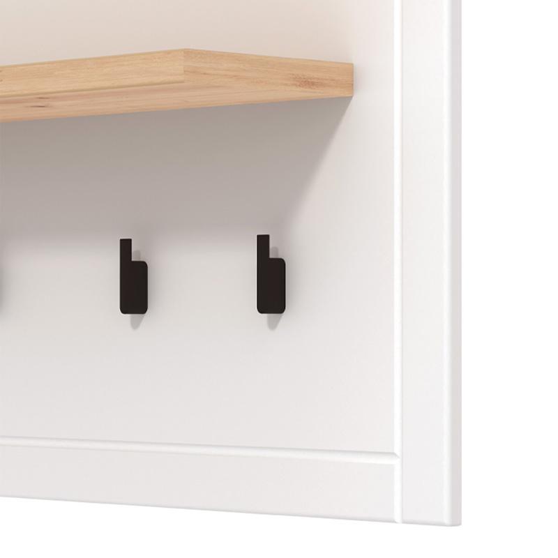 Η κρεμάστρα τοίχου - εισόδου Valencia είναι η απόλυτη επιλογή για να οργανώσετε και να αναβαθμίσετε την είσοδο του σπιτιού σας. Σχεδιασμένο για να εξυπηρετεί τις καθημερινές ανάγκες, το Valencia προσφέρει πρακτικότητα και στιλ. Διαθέτει γάντζους κρεμάστρας για τα πανωφόρια και μία επιφάνεια που μπορεί να χρησιμοποιηθεί για διάφορα προσωπικά αντικείμενα. Η σύνθεση του από artisan oak και λευκό δημιουργεί μια ζεστή και φιλόξενη ατμόσφαιρα, ενώ ταυτόχρονα δίνει έναν μοντέρνο και κομψό χαρακτήρα στον χώρο σας.