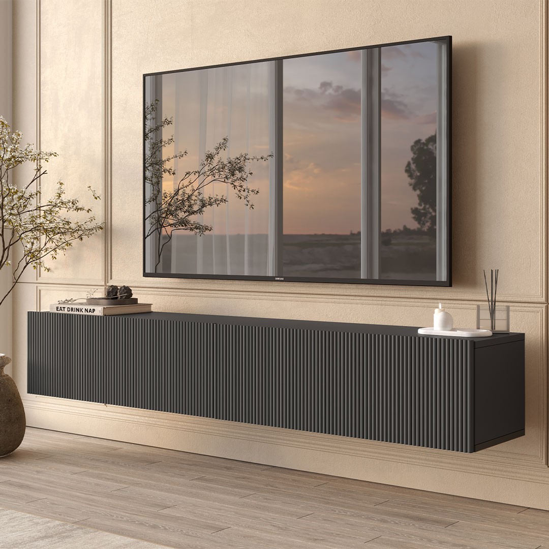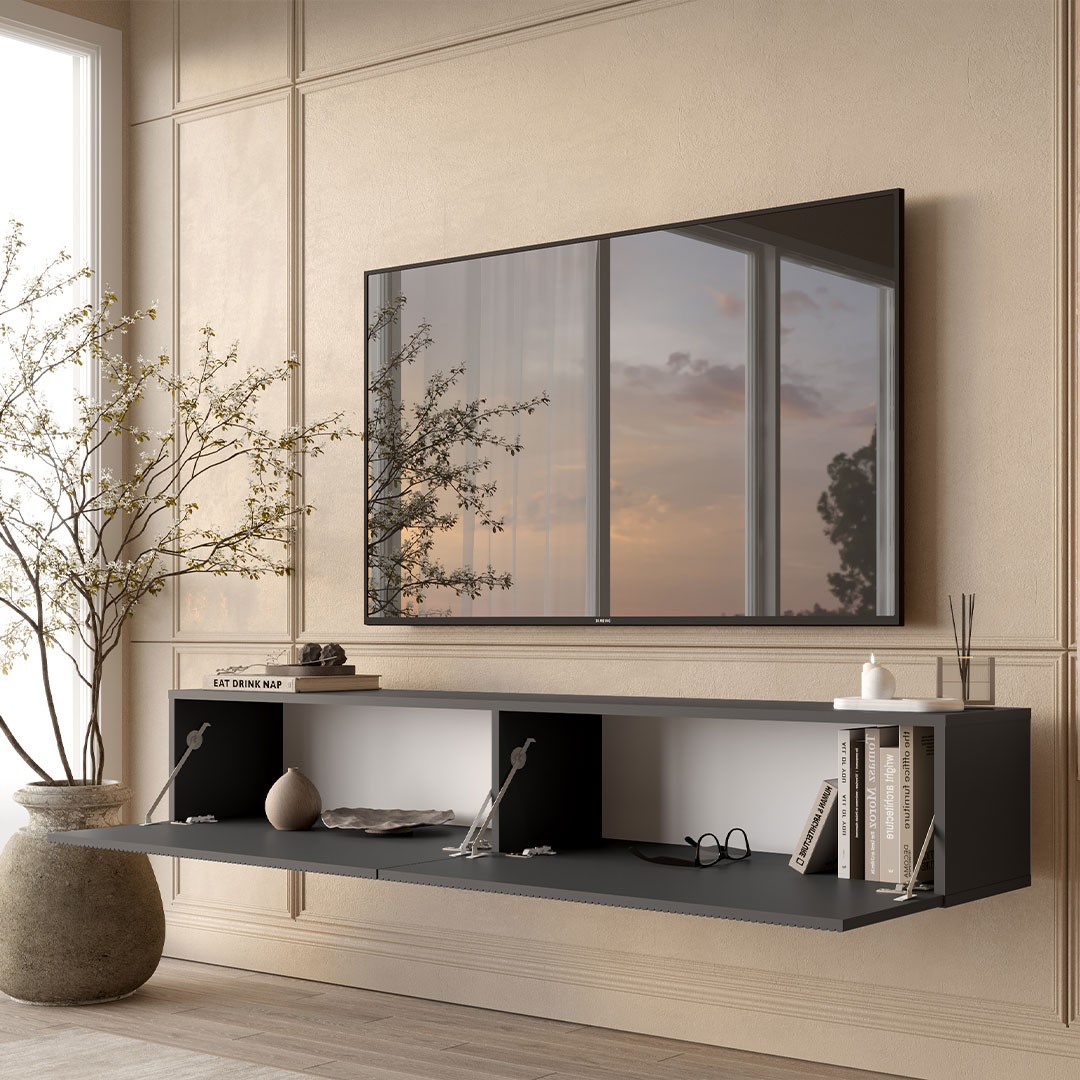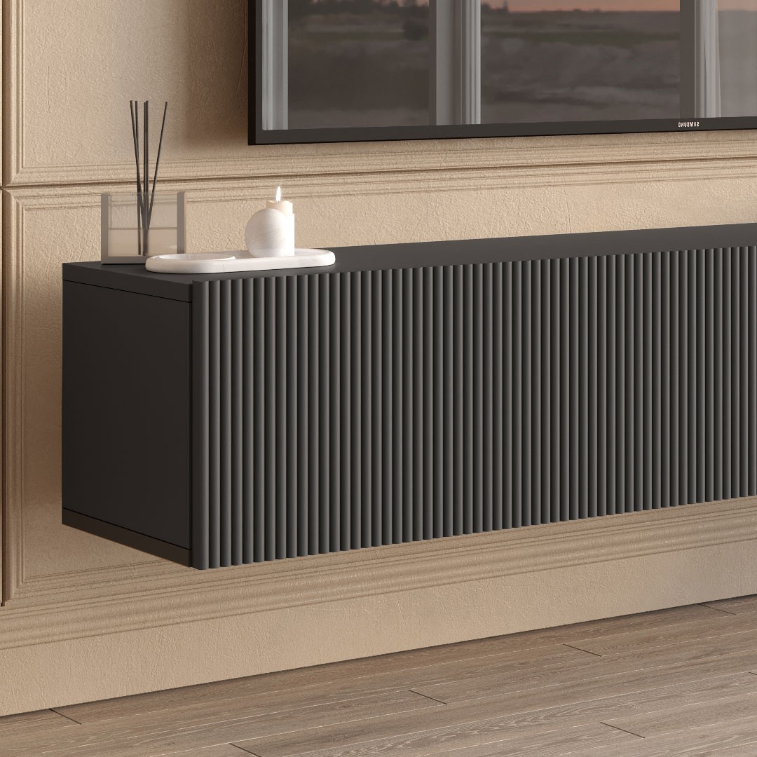 Σας παρουσιάζουμε το έπιπλο τηλεόρασης CAPRI που ξεχωρίζει για τον σύγχρονο και κομψό χαρακτήρα του, αποτελώντας ιδανική επιλογή για χώρους που θέλουν καθαρές γραμμές και minimal αισθητική. Σε επιβλητική ανθρακί απόχρωση και κρεμαστός σχεδιασμός, δημιουργεί αίσθηση ελαφρότητας στον χώρο, ενώ παράλληλα συμβάλλει σε μια πιο μοντέρνα και τακτοποιημένη εικόνα στο σαλόνι σας.