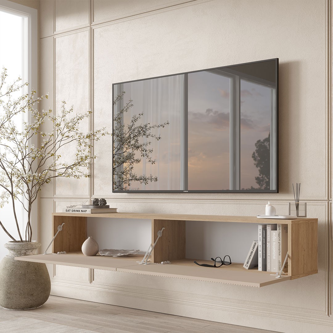 Έπιπλο τηλεόρασης CAPRI Κρεμαστό σε Κασμίρ – Δρύς χρώμα 180x32x30εκ.