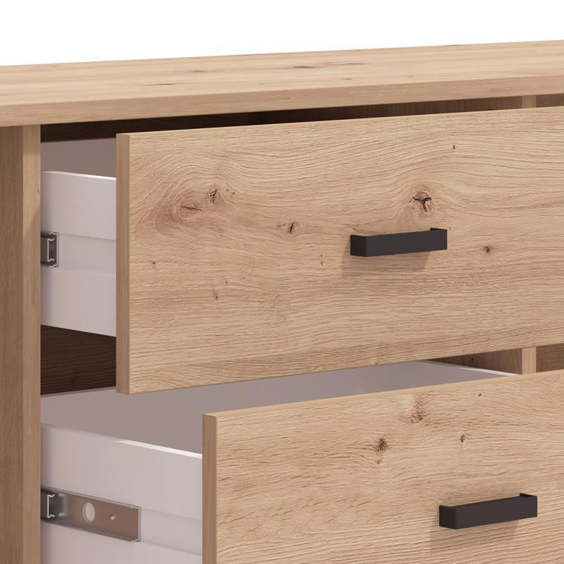 Η επιφάνεια σε απόχρωση Artisan Oak δίνει μια φυσική, ζεστή αίσθηση στον χώρο, ενώ οι μαύρες λεπτομέρειες προσθέτουν μοντέρνο χαρακτήρα, δημιουργώντας μια εντυπωσιακή αντίθεση που ταιριάζει απόλυτα σε σύγχρονες και μίνιμαλ διακοσμήσεις.