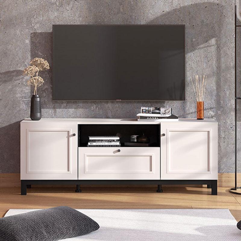 Διαθέτει δύο ντουλάπια, ένα ευρύχωρο συρτάρι και έναν ανοιχτό αποθηκευτικό χώρο, επιτρέποντας την εύκολη οργάνωση των συσκευών πολυμέσων, βιβλίων, τηλεχειριστηρίων και άλλων αντικειμένων. Η εργονομική σχεδίαση του παρέχει άνετη και πρακτική χρήση, ενώ οι μεταλλικές χειρολαβές διαμέτρου 2,1εκ. προσθέτουν ένα μοντέρνο στοιχείο στη συνολική εμφάνιση.