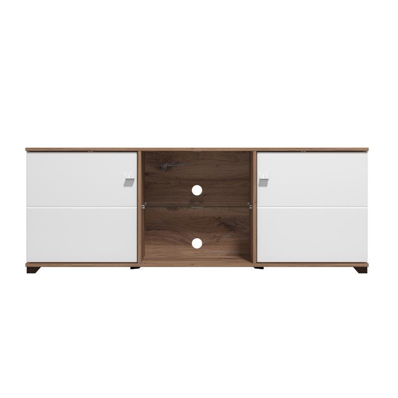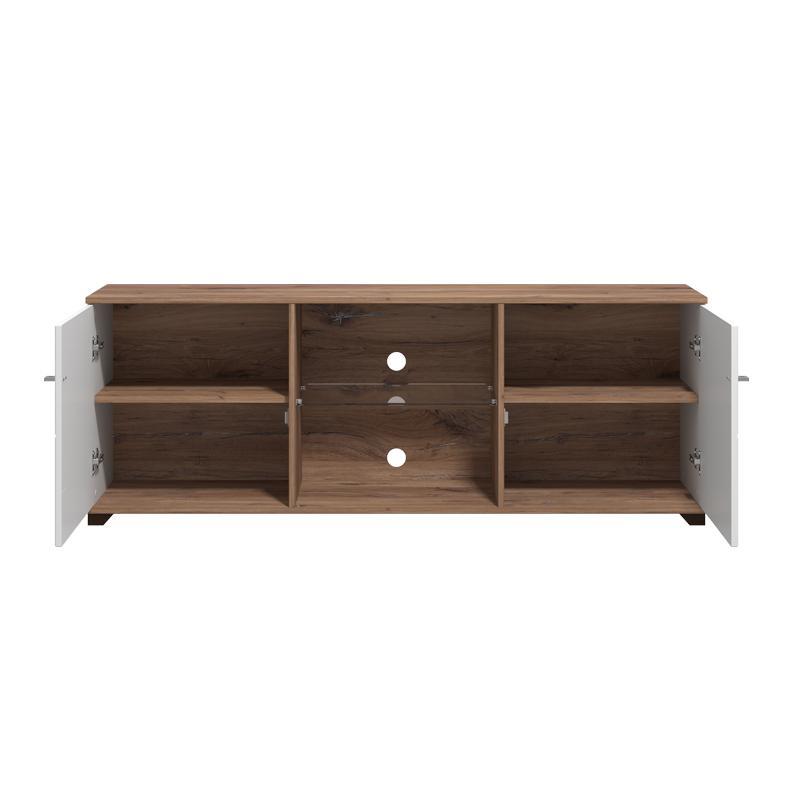 Έπιπλο TV Burgundy 160 3K2V Λευκό – Flagstaff Oak – Λευκό Γυαλιστερό 157x40x51 εκ.