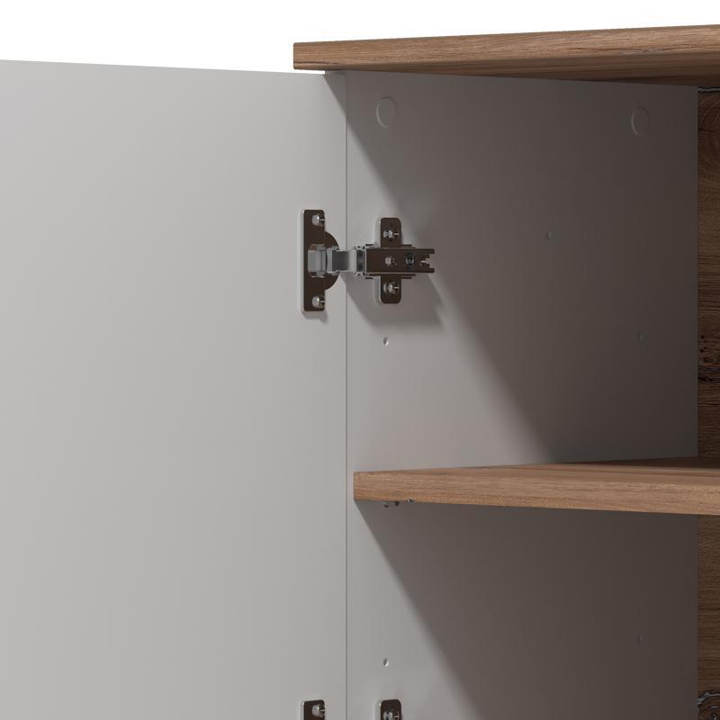 Διαθέτει ντουλάπια και ράφι, παρέχοντας άνετους αποθηκευτικούς χώρους για ηλεκτρονικές συσκευές, βιβλία και διακοσμητικά αντικείμενα. Η μεταλλική χειρολαβή προσθέτει μια διακριτική industrial πινελιά, ενώ η στιβαρή κατασκευή του εξασφαλίζει ανθεκτικότητα και σταθερότητα.