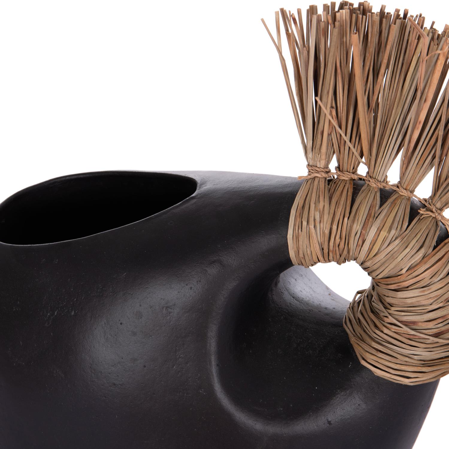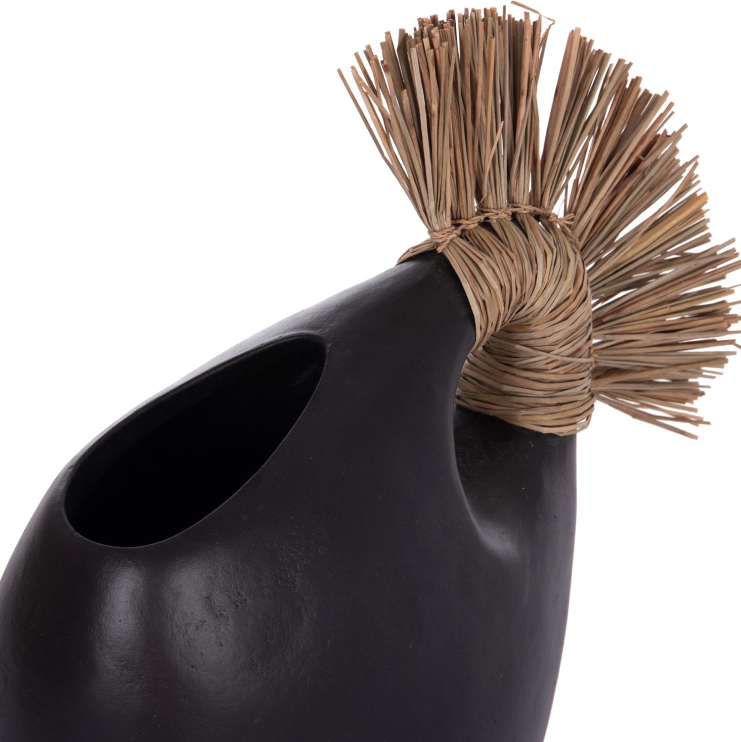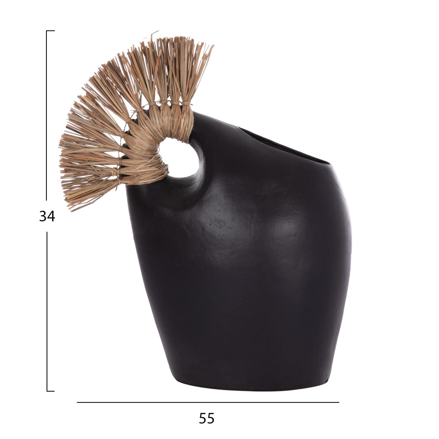 Το επιτραπέζιο χειροποίητο διακοσμητικό βάζο ALICA2 είναι ένα πολύ ιδιαίτερο διακοσμητικό στοιχείο για κάθε χώρο. Είναι κατασκευασμένο εξολοκλήρου από τερακότα σε ΜΑΥΡΟ χρώμα, ενώ διαθέτει και ένα χερούλι επενδυμένο με αποξηραμένο grass, και ένα φαρδύ στόμιο.