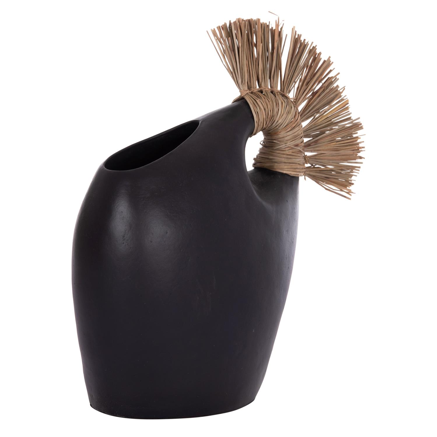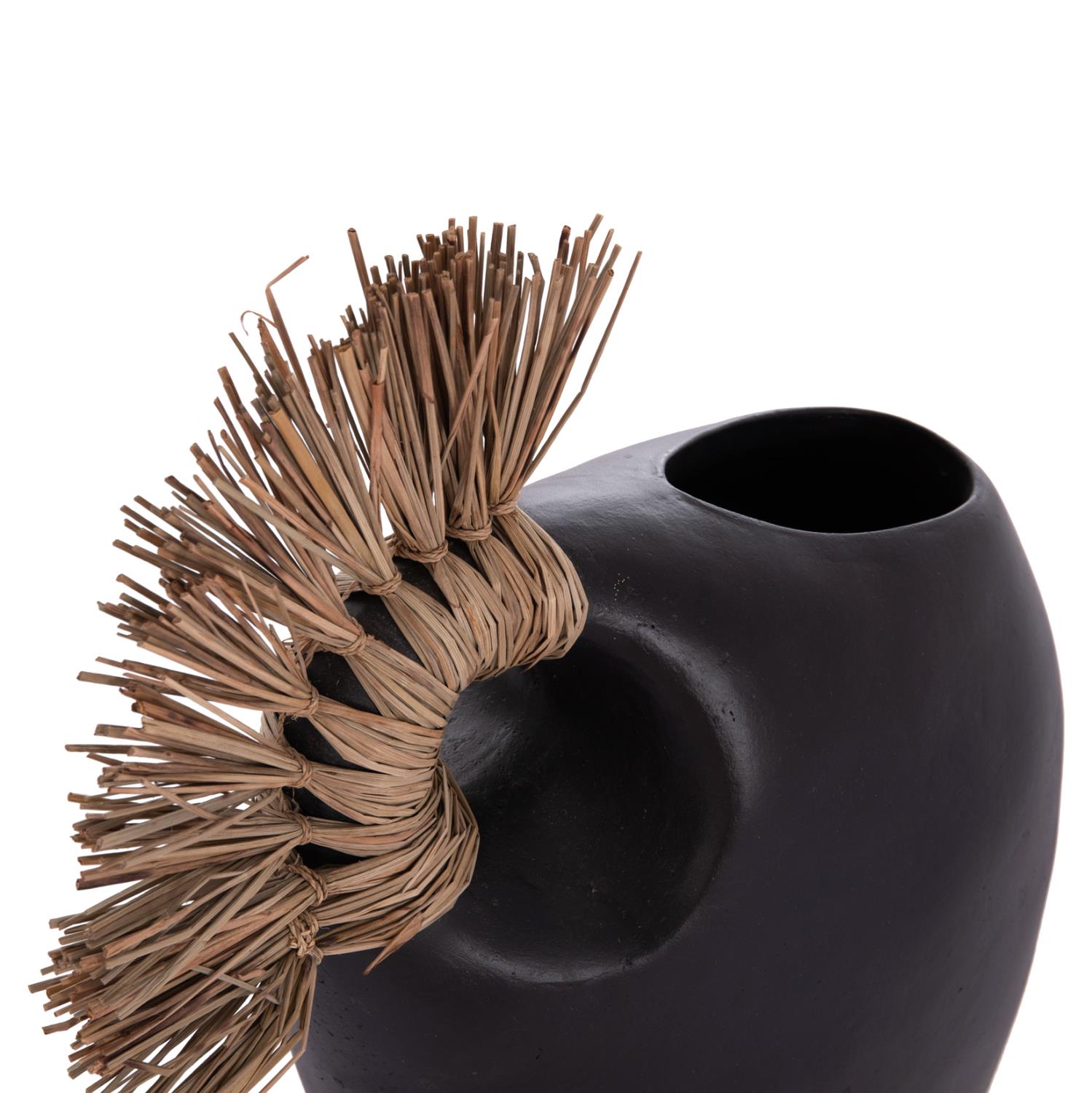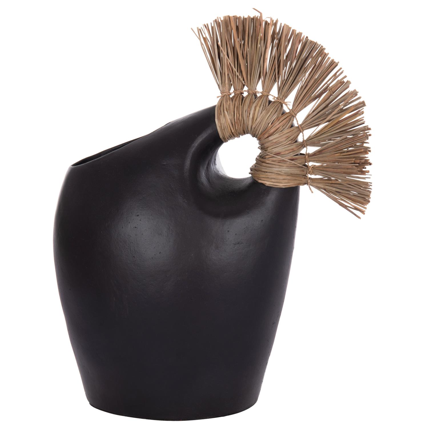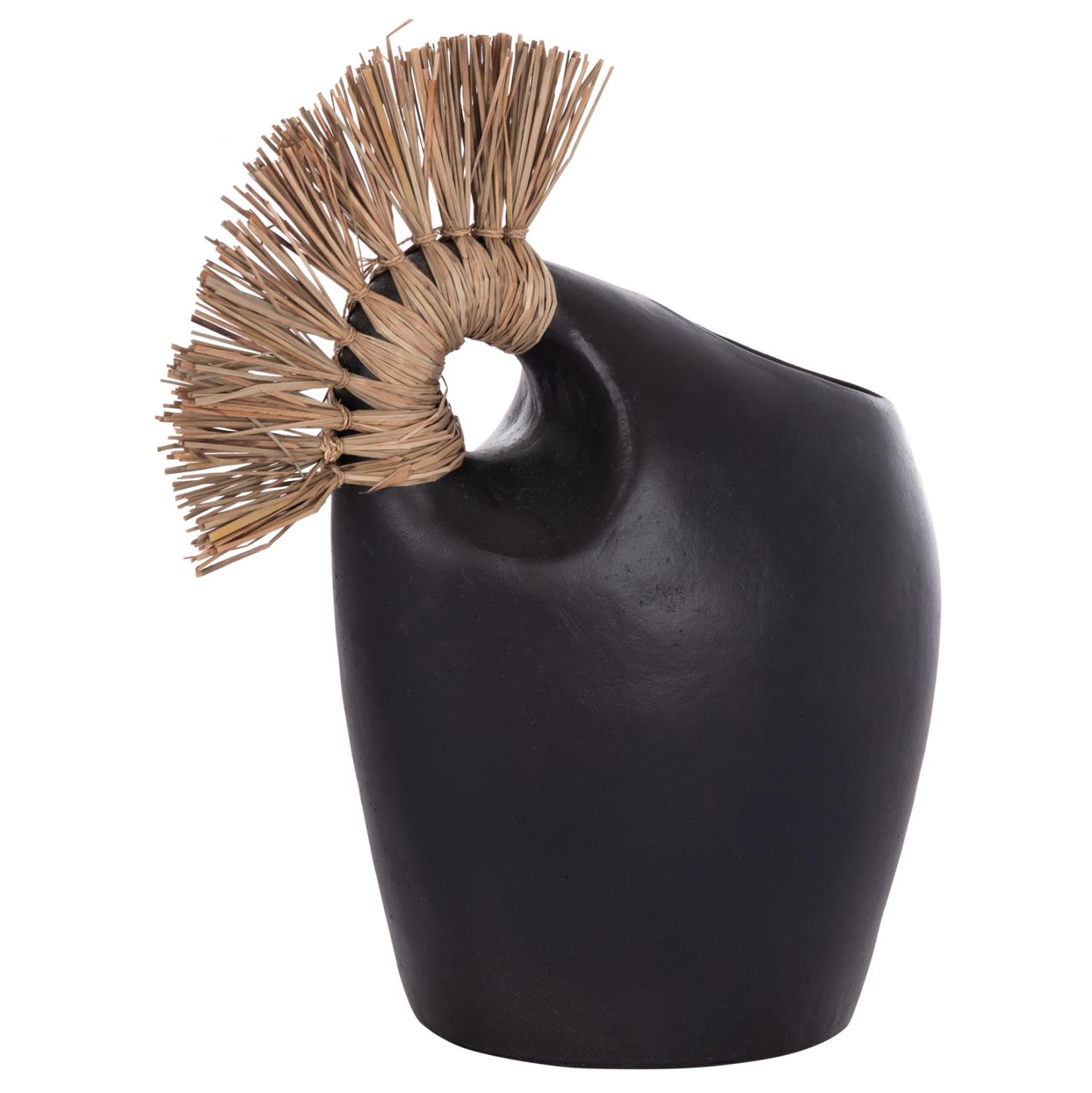 Το επιτραπέζιο χειροποίητο διακοσμητικό βάζο ALICA2 είναι ένα πολύ ιδιαίτερο διακοσμητικό στοιχείο για κάθε χώρο. Είναι κατασκευασμένο εξολοκλήρου από τερακότα σε ΜΑΥΡΟ χρώμα, ενώ διαθέτει και ένα χερούλι επενδυμένο με αποξηραμένο grass, και ένα φαρδύ στόμιο.
