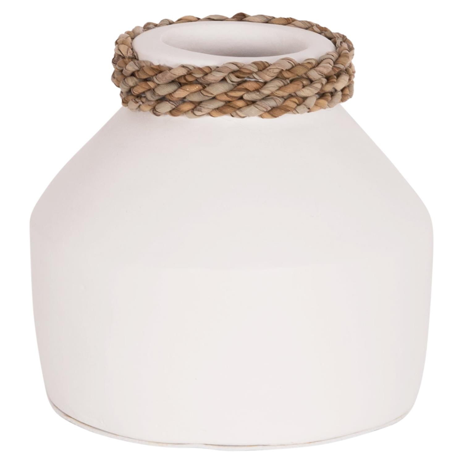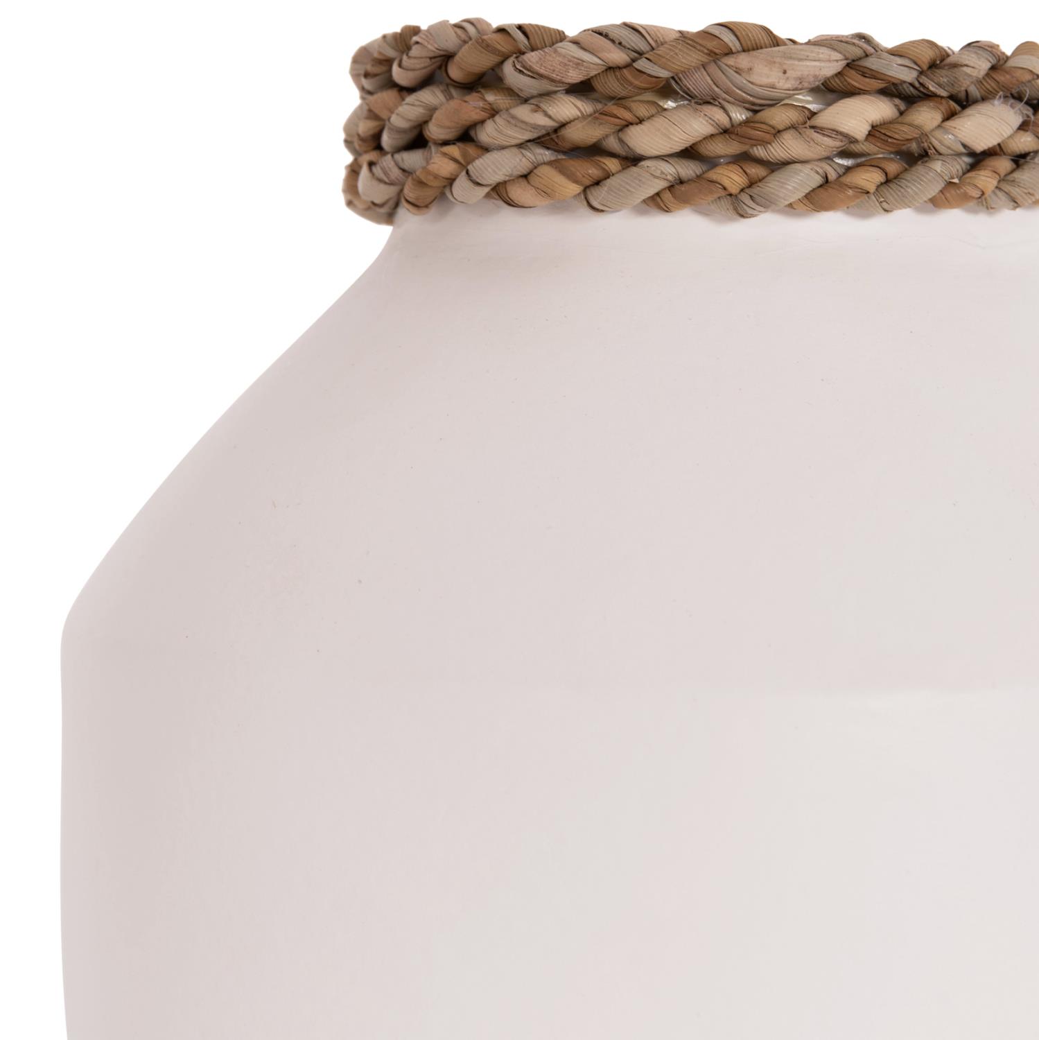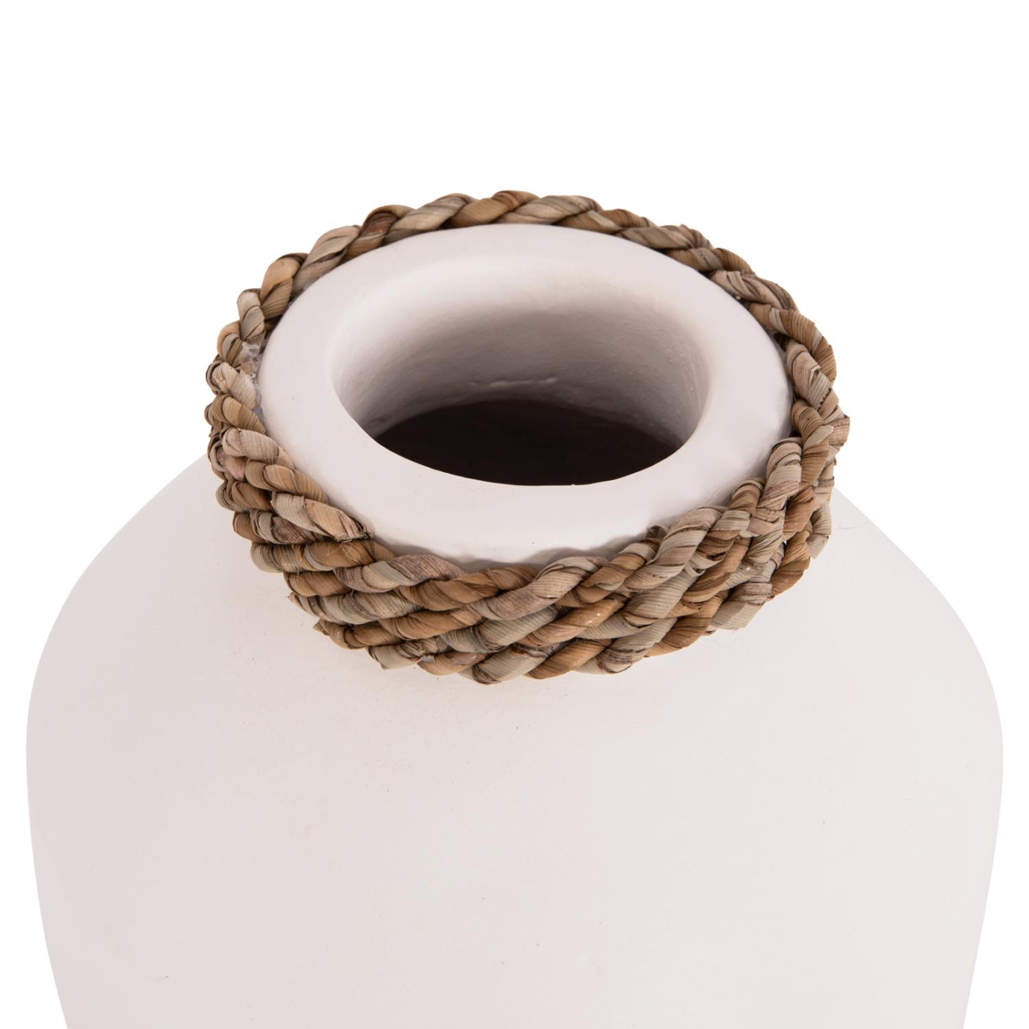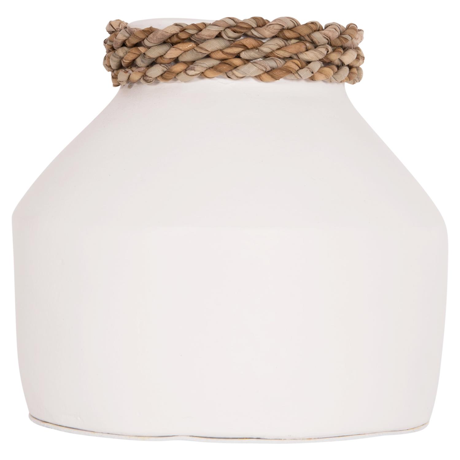 Το επιτραπέζιο χειροποίητο διακοσμητικό βάζο CAMMER είναι κατασκευασμένο εξολοκλήρου από τερακότα σε ΛΕΥΚΟ χρώμα ενώ διαθέτει διακοσμητική πλέξη από rattan περιμετρικά στον «λαιμό» του βάζου. Ιδανικό για πληθώρα χώρων, τόσο για το σπίτι, όσο και για επαγγελματικούς χώρους.