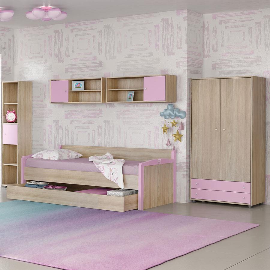 Η εταζέρα καναπέ-κρεβάτι της παιδικής σειράς KIDDEN είναι η ιδανική λύση για την οργάνωση και αποθήκευση στο παιδικό δωμάτιο. Το σετ περιλαμβάνει δύο τεμάχια, το καθένα κατασκευασμένο από ενισχυμένη μελαμίνη, με ένα ράφι και ένα ντουλάπι για κλειστό χώρο αποθήκευσης.