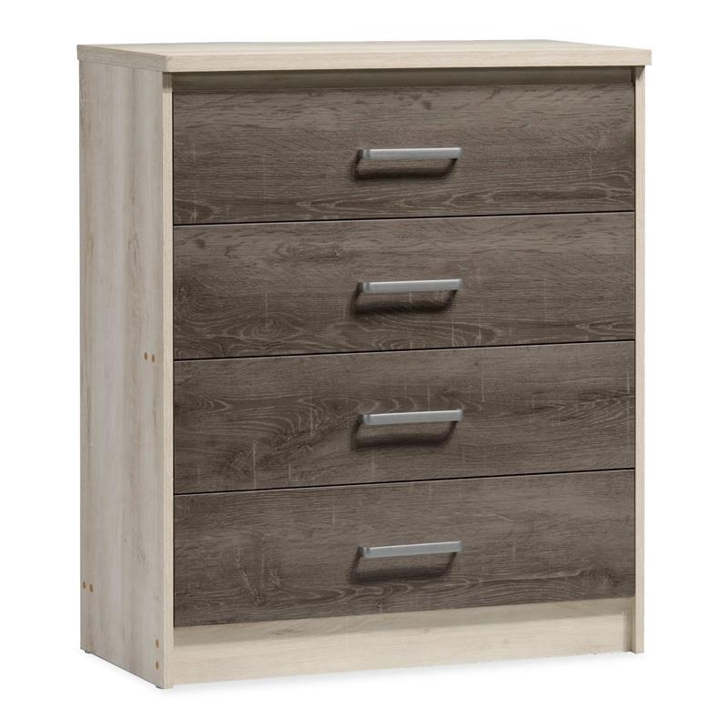 • Φέρει τέσσερα μεγάλα συρόμενα συρτάρια σε σκούρη απόχρωση.  Υψος συρταριού εξωτ: 20εκ -εσωτ 15εκ