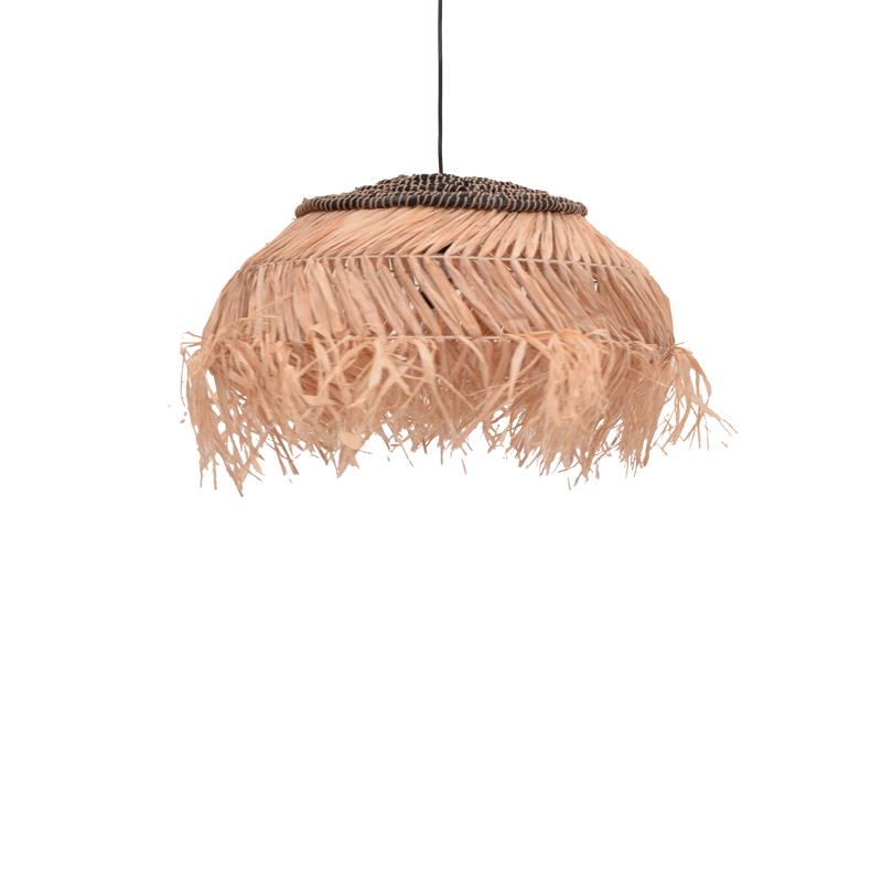 - Sisal: Το sisal, που προέρχεται από τα φύλλα του φυτού Agave sisalanaκαι αποτελεί μια φυσική ίνα που βρίσκει εφαρμογή σε διάφορες κατασκευές, συμπεριλαμβανομένων και των φωτιστικών. Φημίζεται για την ανθεκτικότητα και την αντοχή του στη φθορά, καθιστώντας το ιδανικό για μακροχρόνια χρήση. Χάρη στην ιδιότητά του να διαχέει το φως, δημιουργεί μια απαλή λάμψη.
