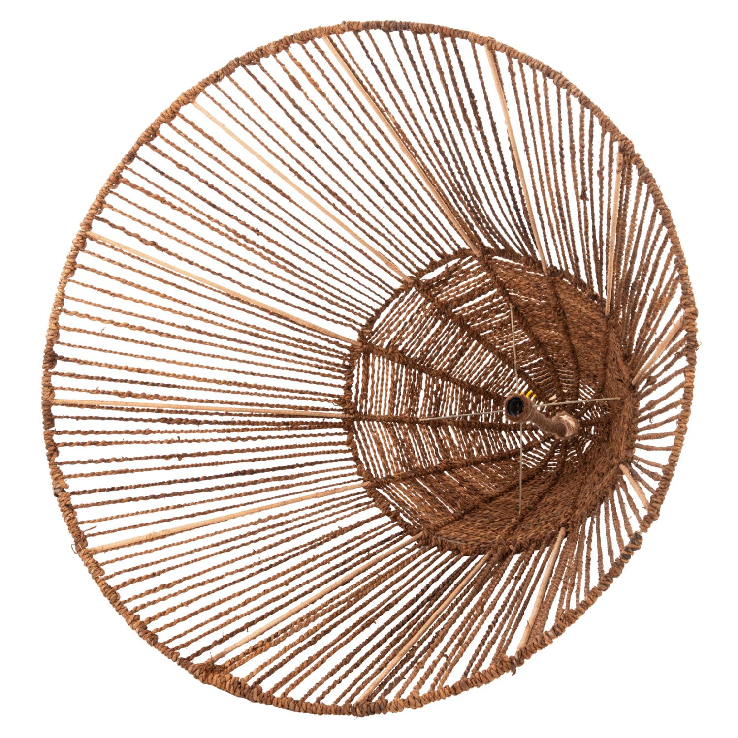 C11920- Kρεμαστό φωτιστικό---- Αν επιθυμείτε να διακοσμήσετε το χώρο σας με ένα φωτιστικό σε boho στυλ με εξωτικά υλικά και να το συνδυάσετε με την τελευταία τάση στην διακόσμηση που είναι το σχοινί, αυτό είναι η καλύτερη επιλογή. Είναι ένα μονόφωτο με «καπέλο» σε κωνικό σχήμα φτιαγμένο από ίνες μπανανιάς, σε ΦΥΣΙΚΟ χρώμα.