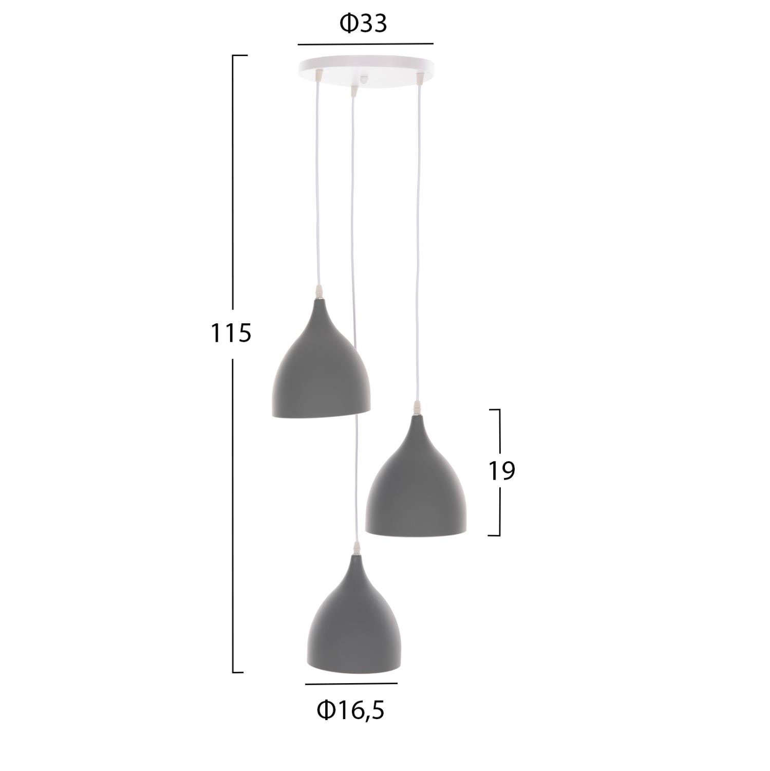 Φωτιστικό Οροφής Κρεμαστό C4139 Τρίφωτο Μεταλλικό Γκρί Φ33×115Υεκ.