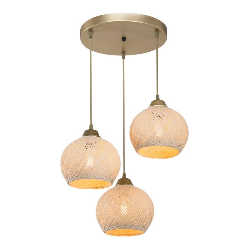 Φωτιστικό οροφής τρίφωτο PWL-1121 pakoworld Ε27 κρεμ-χρυσό Φ40x75εκ