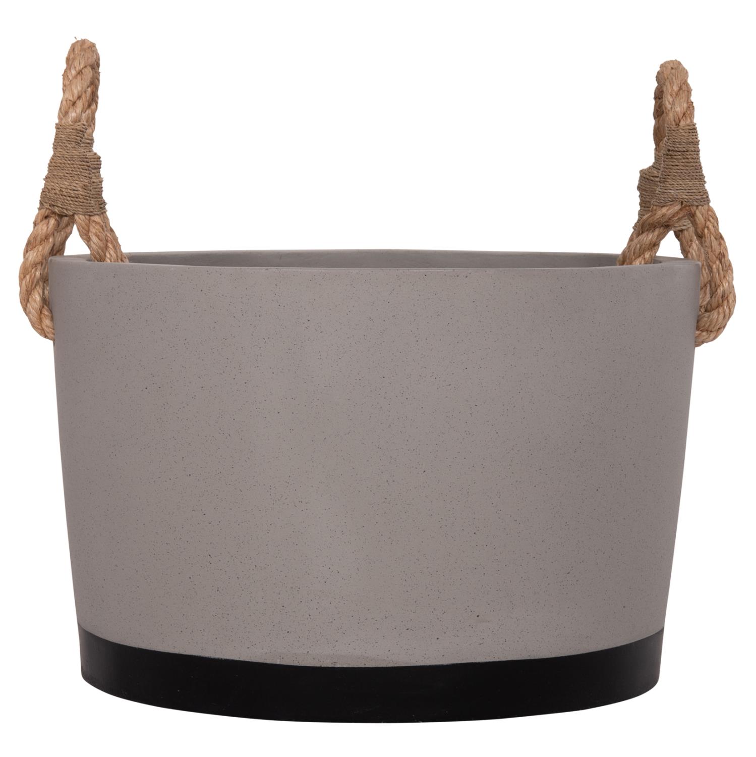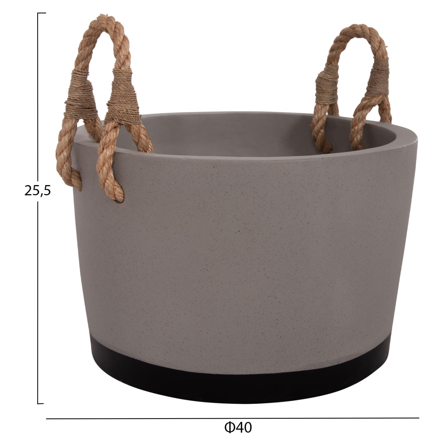 Η γλάστρα της σειράς TRYLL είναι κατασκευασμένη από Fiber Cement σε ΓΚΡΙ χρώμα με ΜΑΥΡΟ περίγραμμα βάσης. Το ιδιαίτερο χαρακτηριστικό της είναι ότι διαθέτουν χερούλια από ανθεκτικό σχοινί για εύκολη μεταφορά.