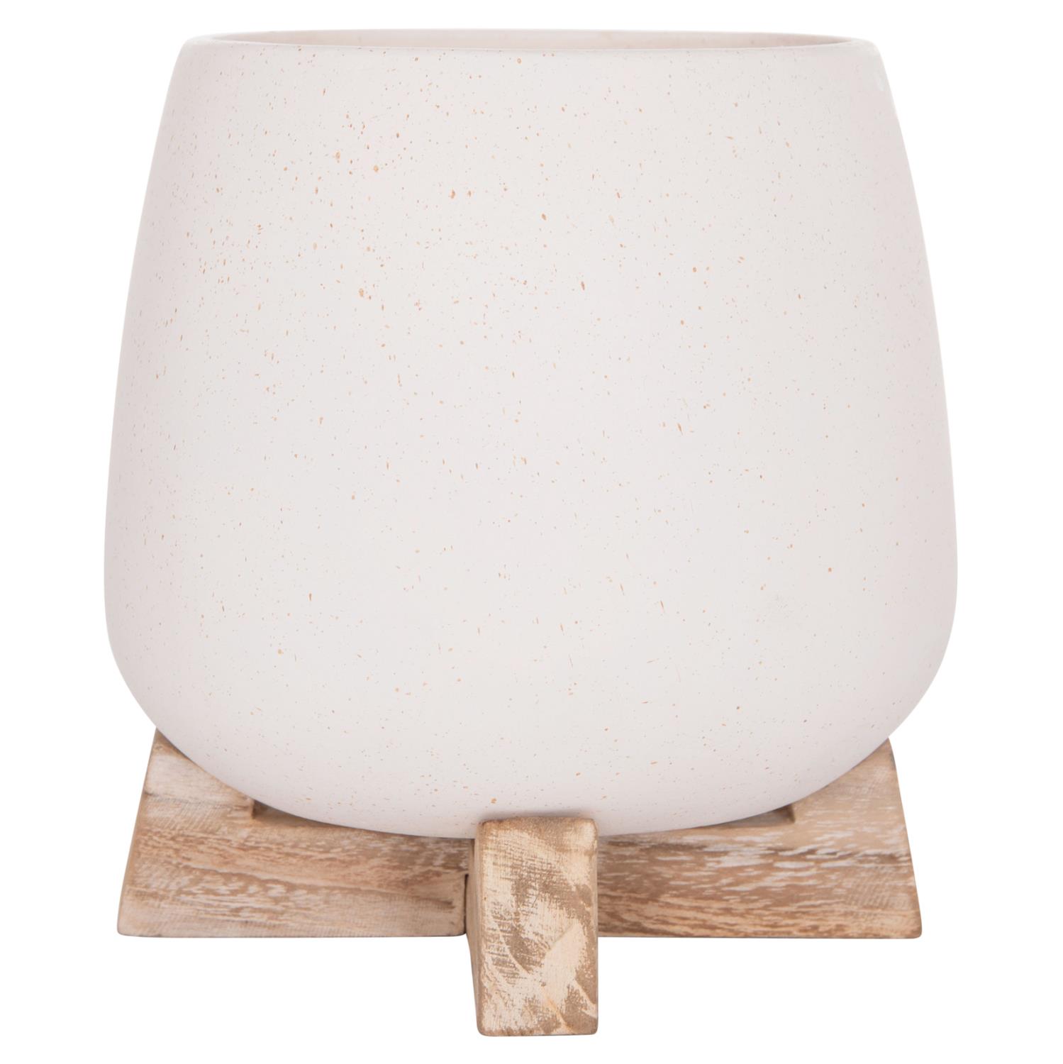 Η μικρή γλάστρα FRELLO είναι κατασκευασμένη από Fiber Cement σε ΛΕΥΚΟ χρώμα. Το ιδιαίτερο χαρακτηριστικό της είναι ότι συνοδεύεται από όμορφη και πρακτική βάση από ξύλο teak.