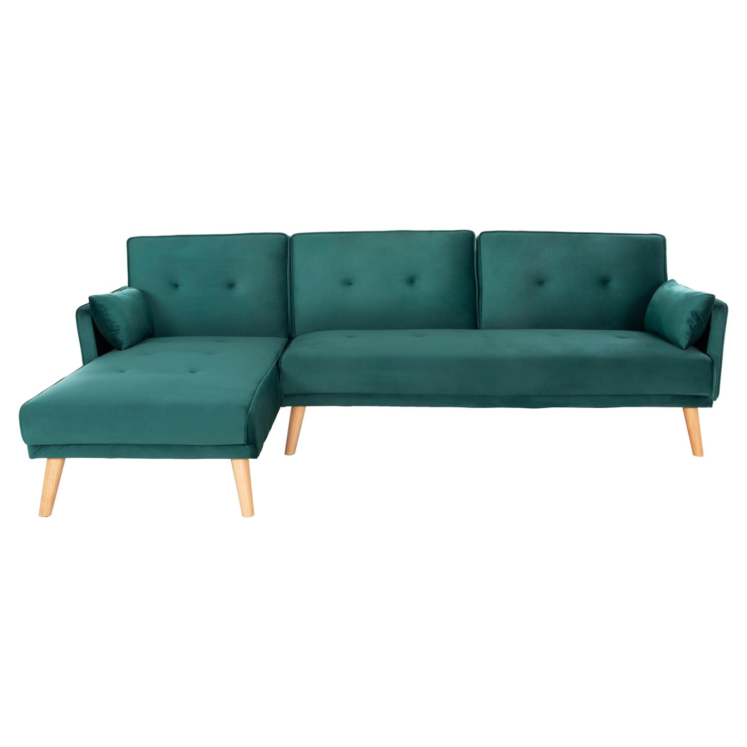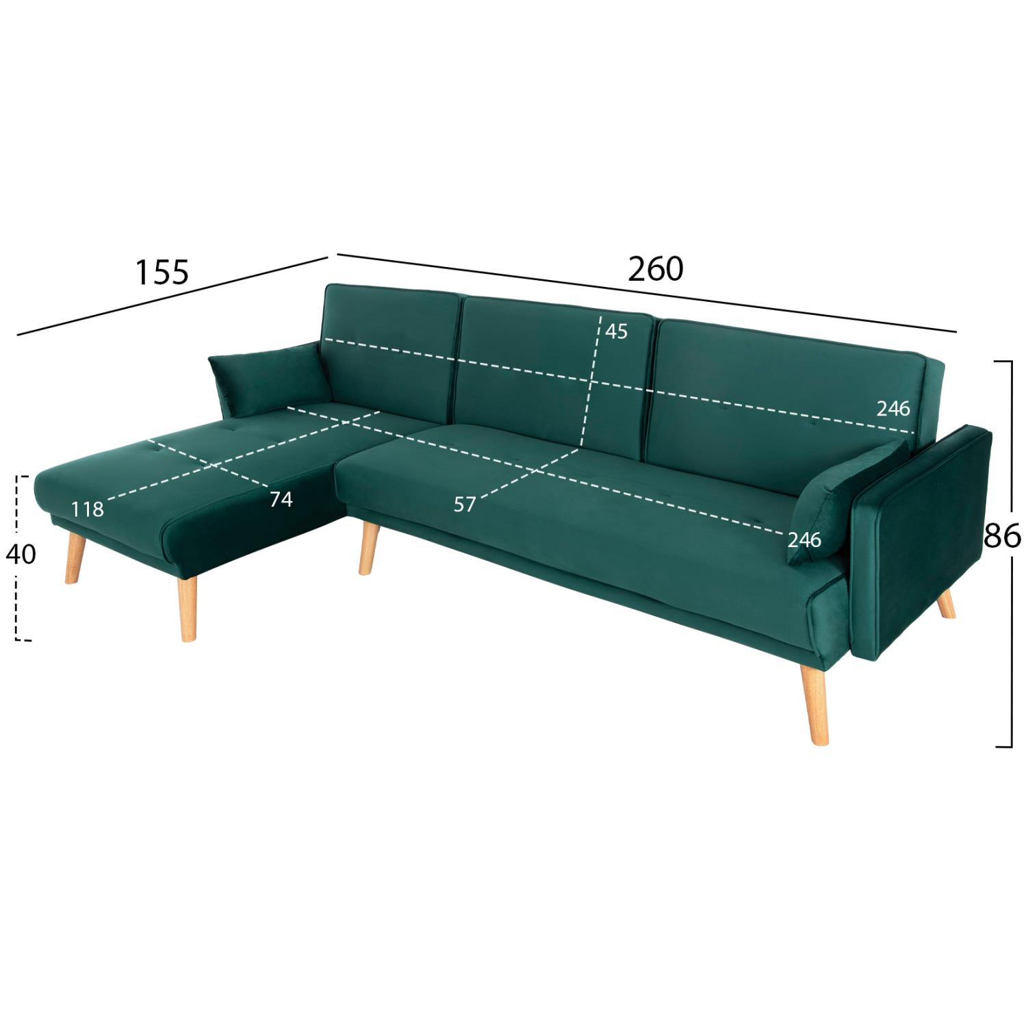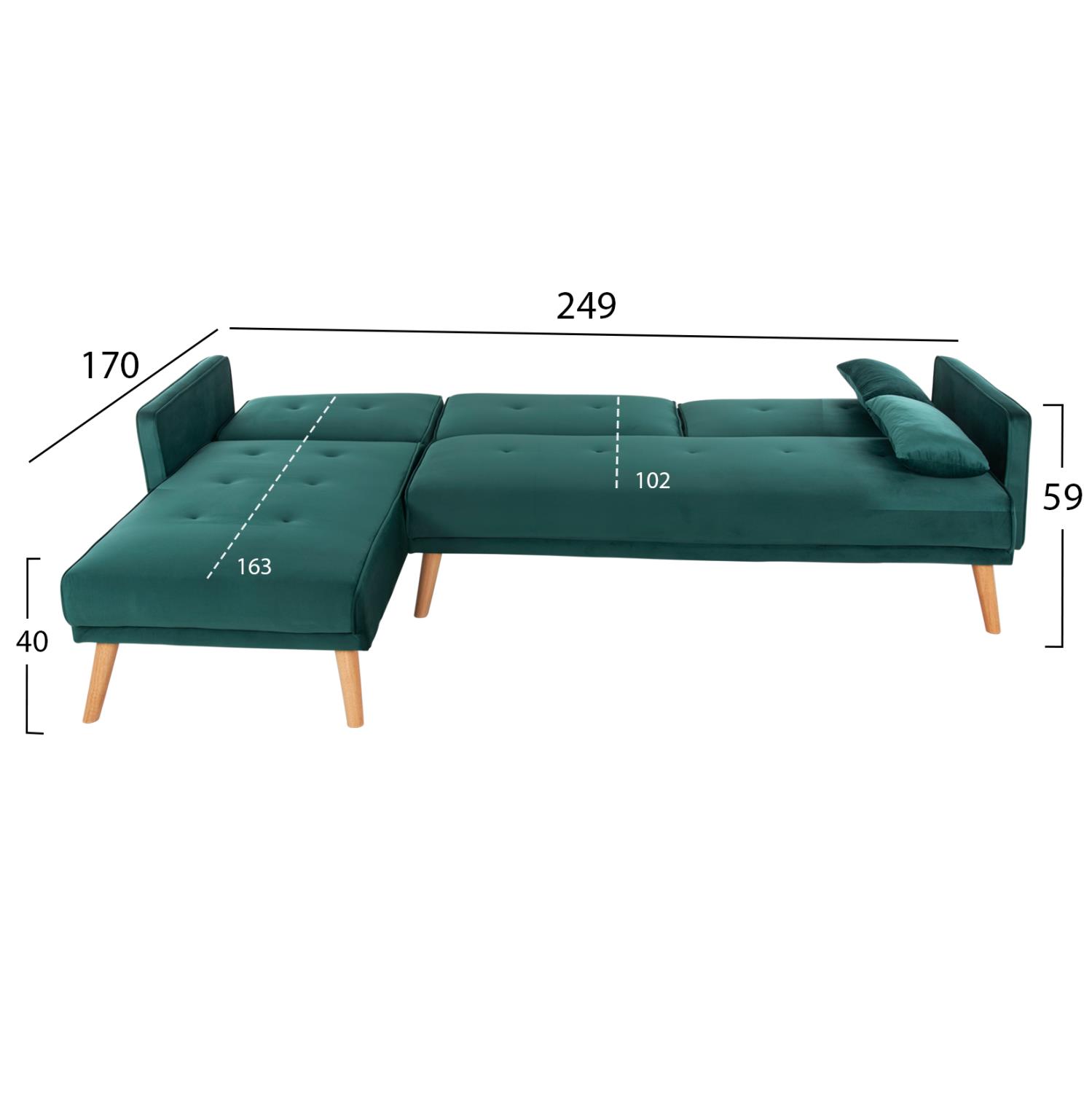 Ο PANTHEA είναι ένας 3-θέσιος γωνιακός καναπές επενδυμένος με βελούδινο ύφασμα σε ΚΥΠΑΡΙΣΣΙ χρώμα και πολύ ψηλά ξύλινα πόδια σε ΦΥΣΙΚΟ χρώμα ξύλου. Το πλεονέκτημά του είναι ότι μετατρέπεται σε κρεβάτι με μηχανισμό που «ρίχνει» την πλάτη, ενώ η πλευρά που δημιουργεί την γωνία μπορεί να τοποθετηθεί είτε αριστερά, είτε δεξιά ανάλογα με την διαρρύθμιση του χώρου σας. Ο καναπές διαθέτει και 2 μικρά μαξιλαράκια σε ίδιο χρώμα και ύφασμα.