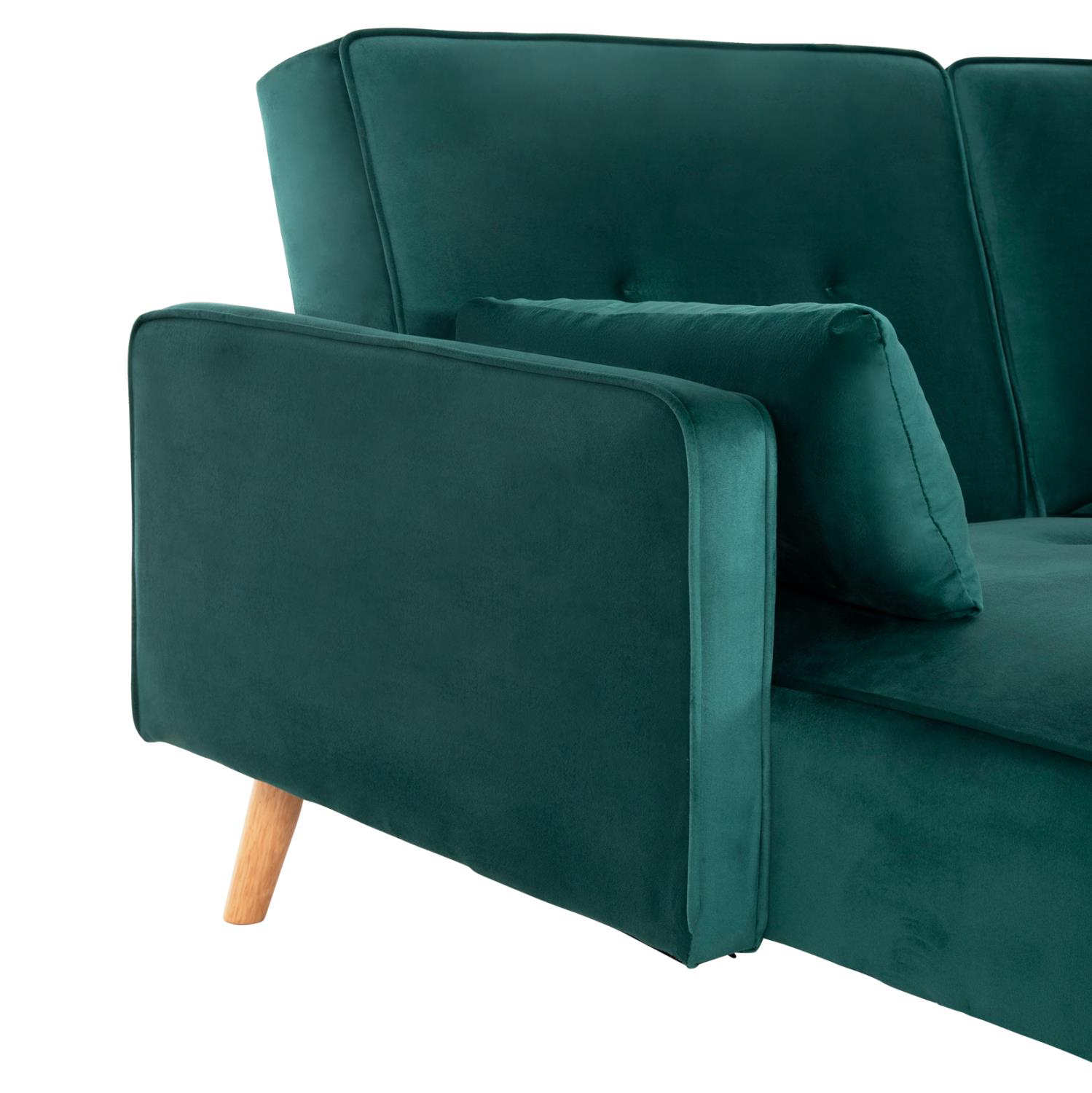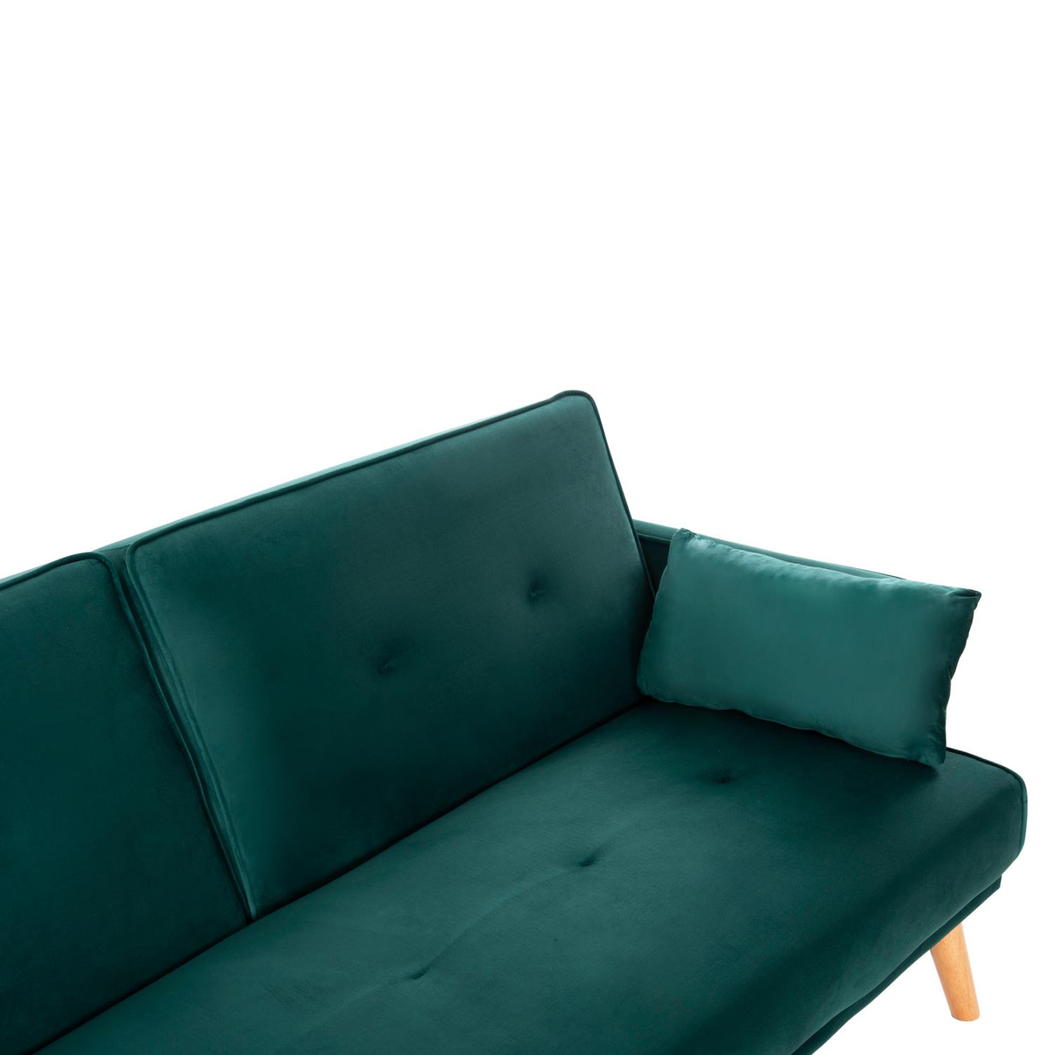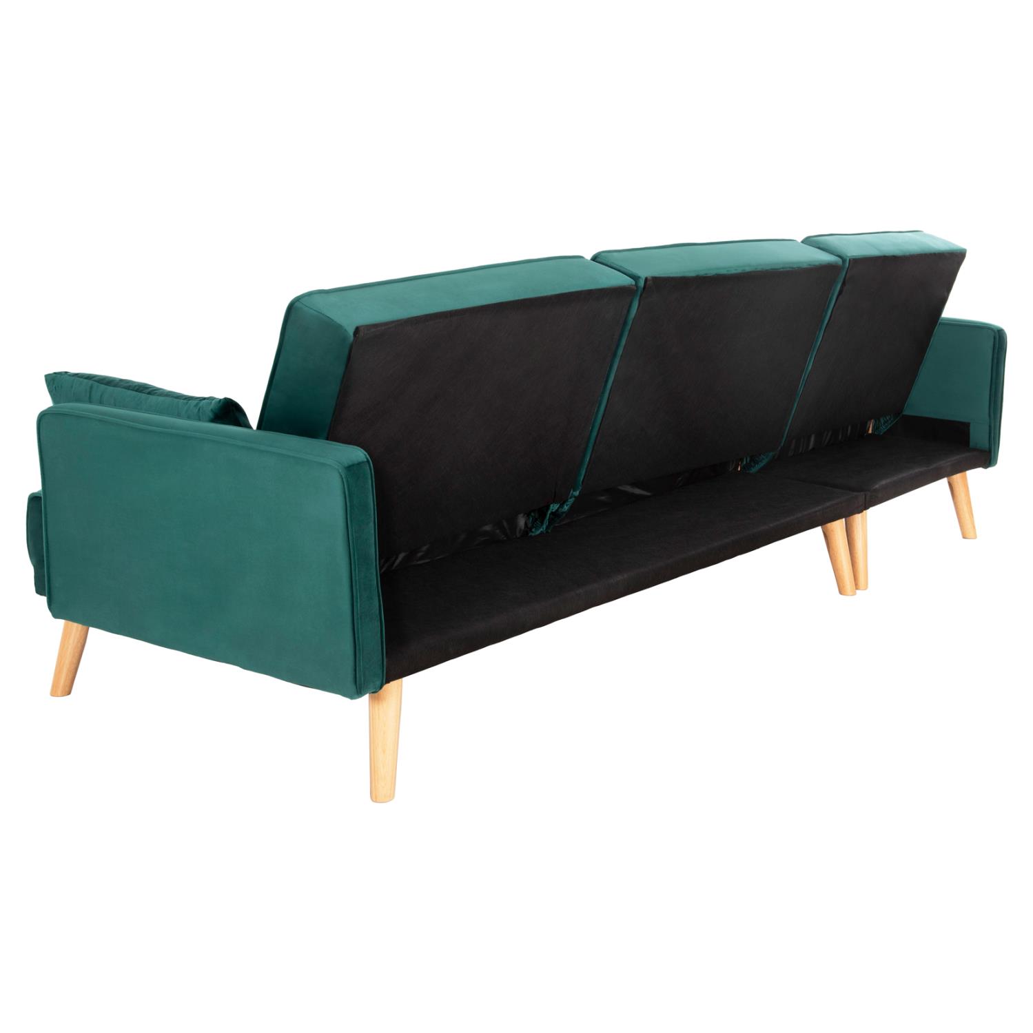 Η επένδυση του καναπέ έχει γίνει με εξαιρετικό βελούδινο ύφασμα. Το βελούδο είναι ένα ύφασμα απαλό, χαλαρό, απολαυστικό και φινετσάτο που μπορεί να εναρμονιστεί εύκολα με κάθε είδος διακόσμησης, προσδίδοντας στο χώρο καλαισθησία.