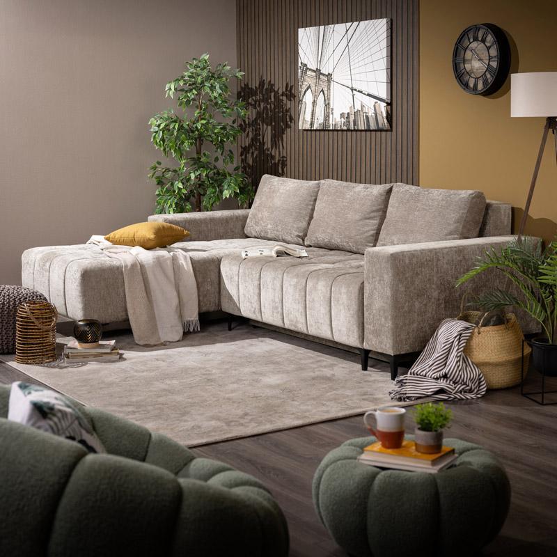 Γωνιακός Καναπές – Κρεβάτι Bogota Fylliana Αριστερή γωνία Ύφασμα Μπέζ 245x184x80εκ.