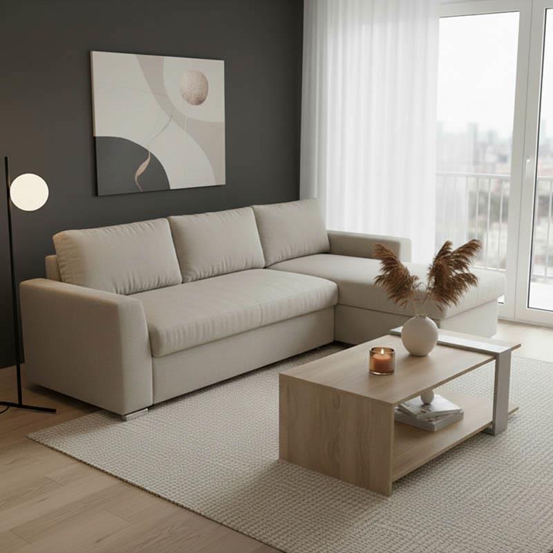 - Φέρει εύχρηστο μηχανισμό που με μία μόνο κίνηση ανασηκώνεται, μετατρέποντας τον καναπέ σε κρεβάτι και το αντίστροφο.