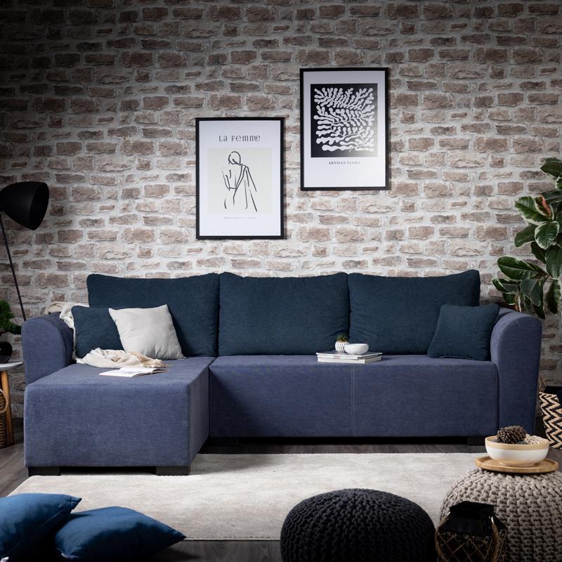 Ο γωνιακός καναπές - κρεβάτι Migros συνδυάζει μοντέρνο σχεδιασμό, πρακτικότητα και άνεση για το χώρο του σαλονιού σας. Με υφασμάτινη επένδυση σε ιδιαίτερη και κομψή μπλέ απόχρωση και την αναστρέψιμη γωνία του, προσαρμόζεται εύκολα στη διάταξη του χώρου σας, προσφέροντας ευελιξία και στυλ.