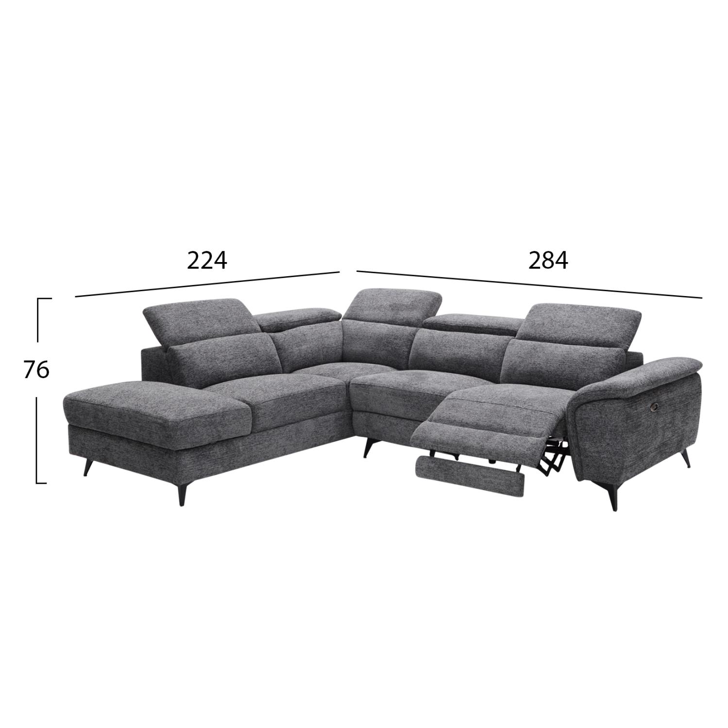 Καναπές Αριστερή Γωνία RESTRO—Γκρι πολυεστερικό ύφασμα