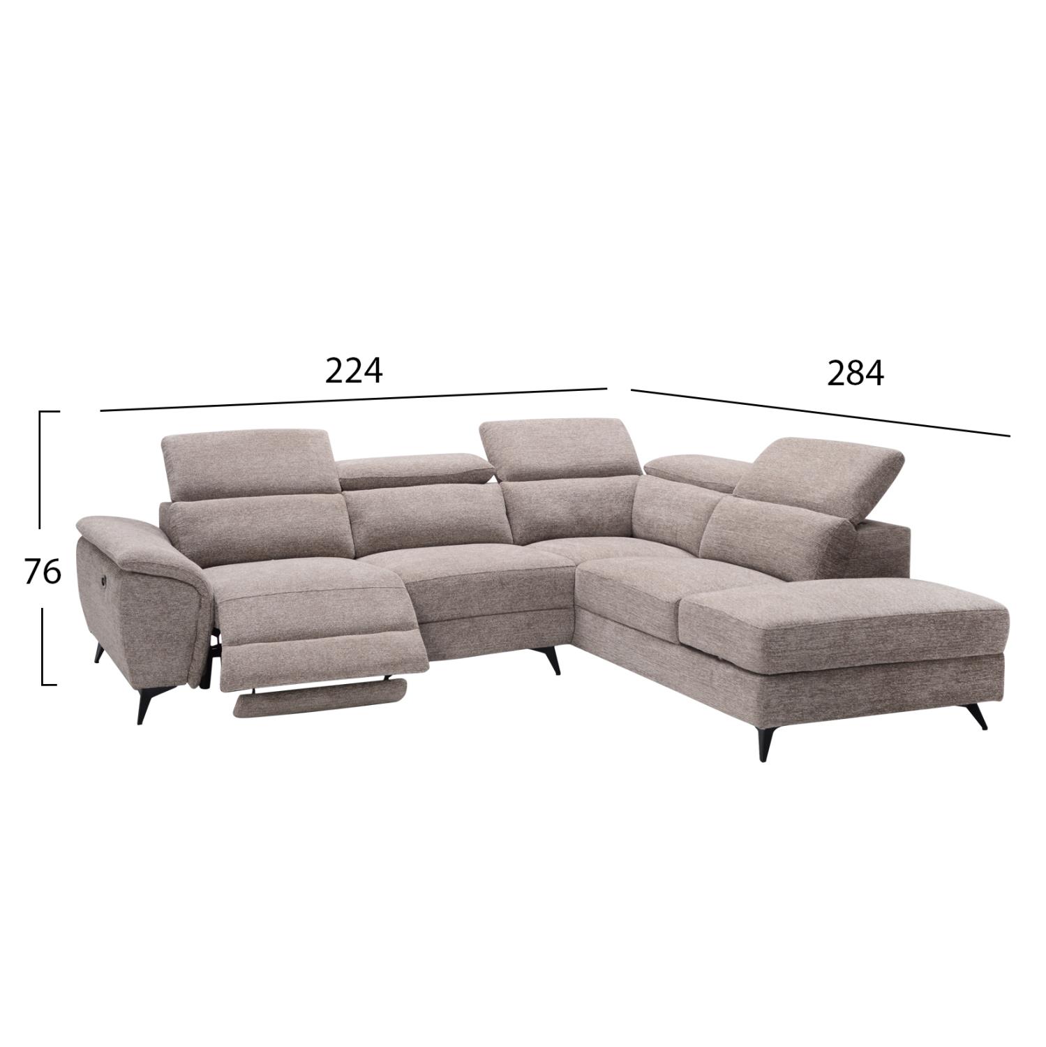 Γωνιακός Καναπές RESTRO Αριστερή γωνία με Ανακλίσεις σε Μπεζ ύφασμα 284x224x76Υεκ.