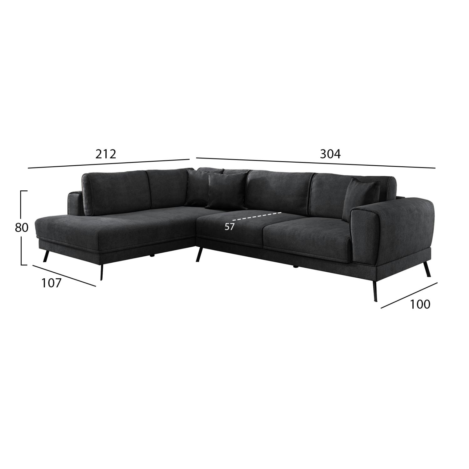 Γωνιακός Καναπές ZENORA Αριστερή γωνία σε Σκούρο Γκρί Ύφασμα 304x212x80Υεκ.