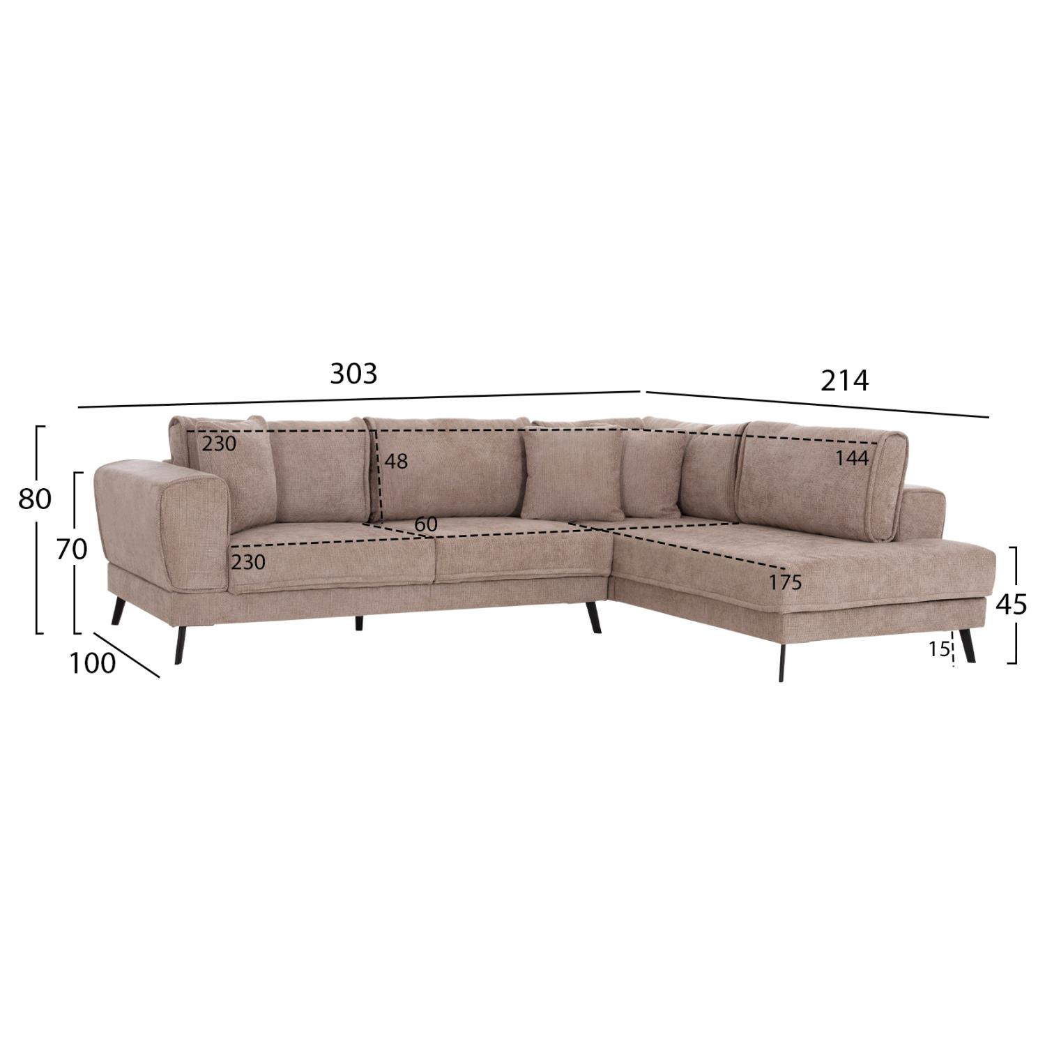 •Συνολικές διαστάσεις καναπέ: 303x214x80Υ εκ.