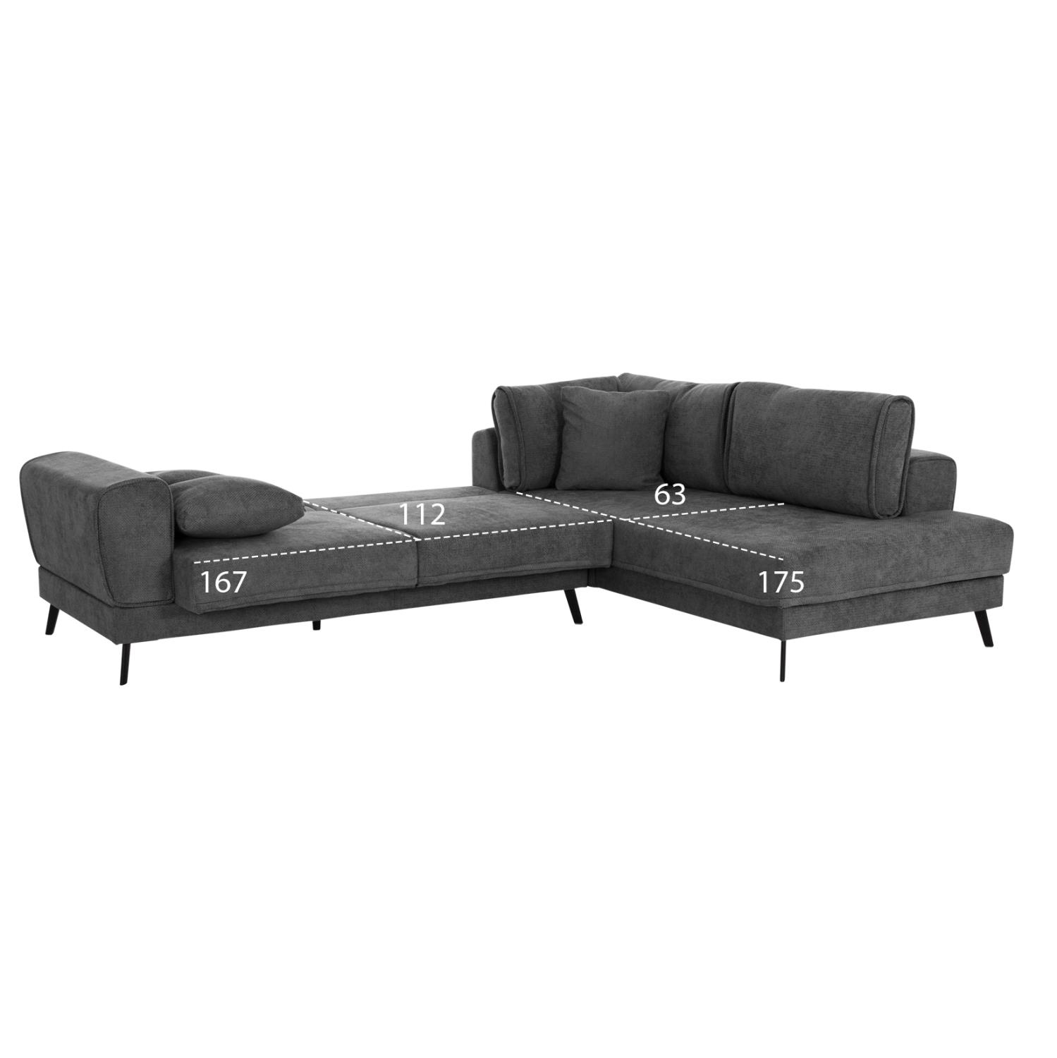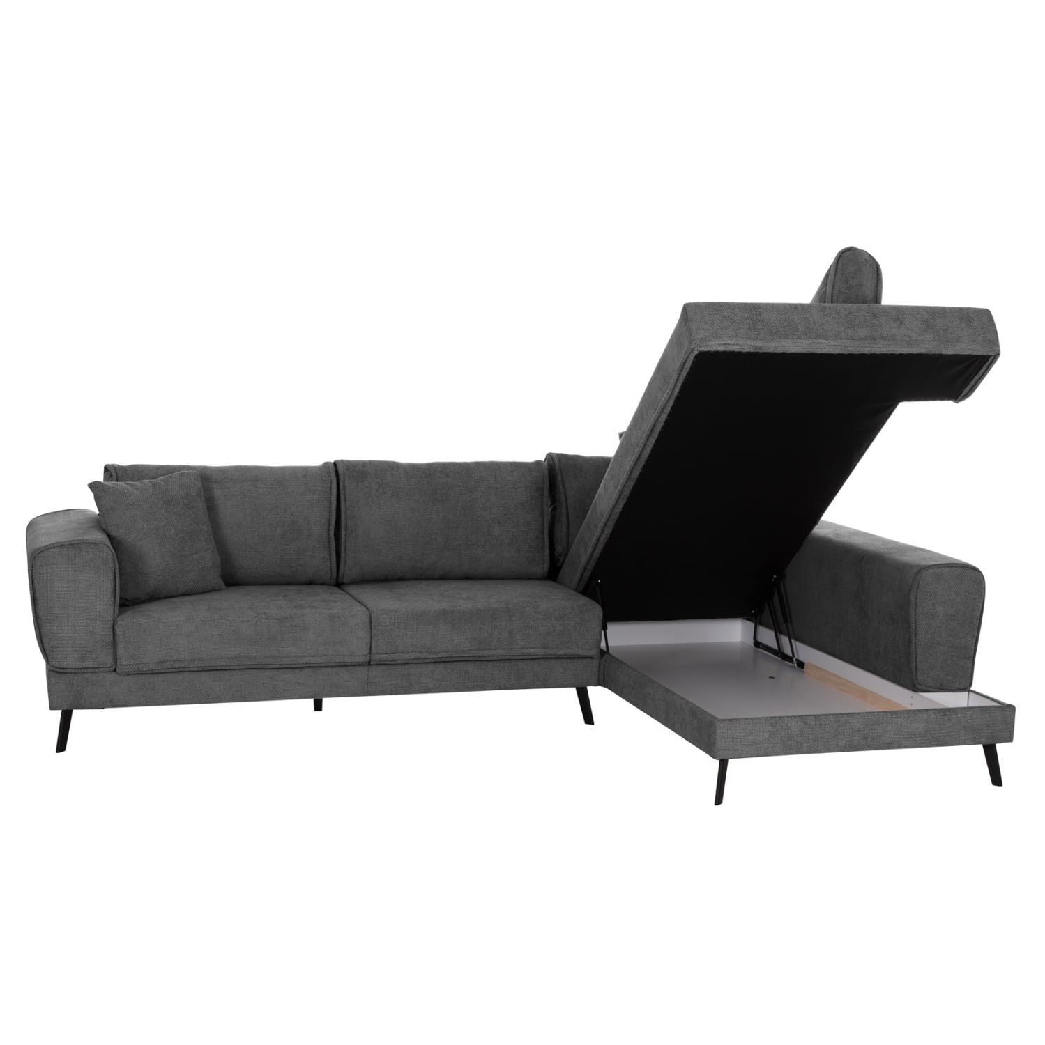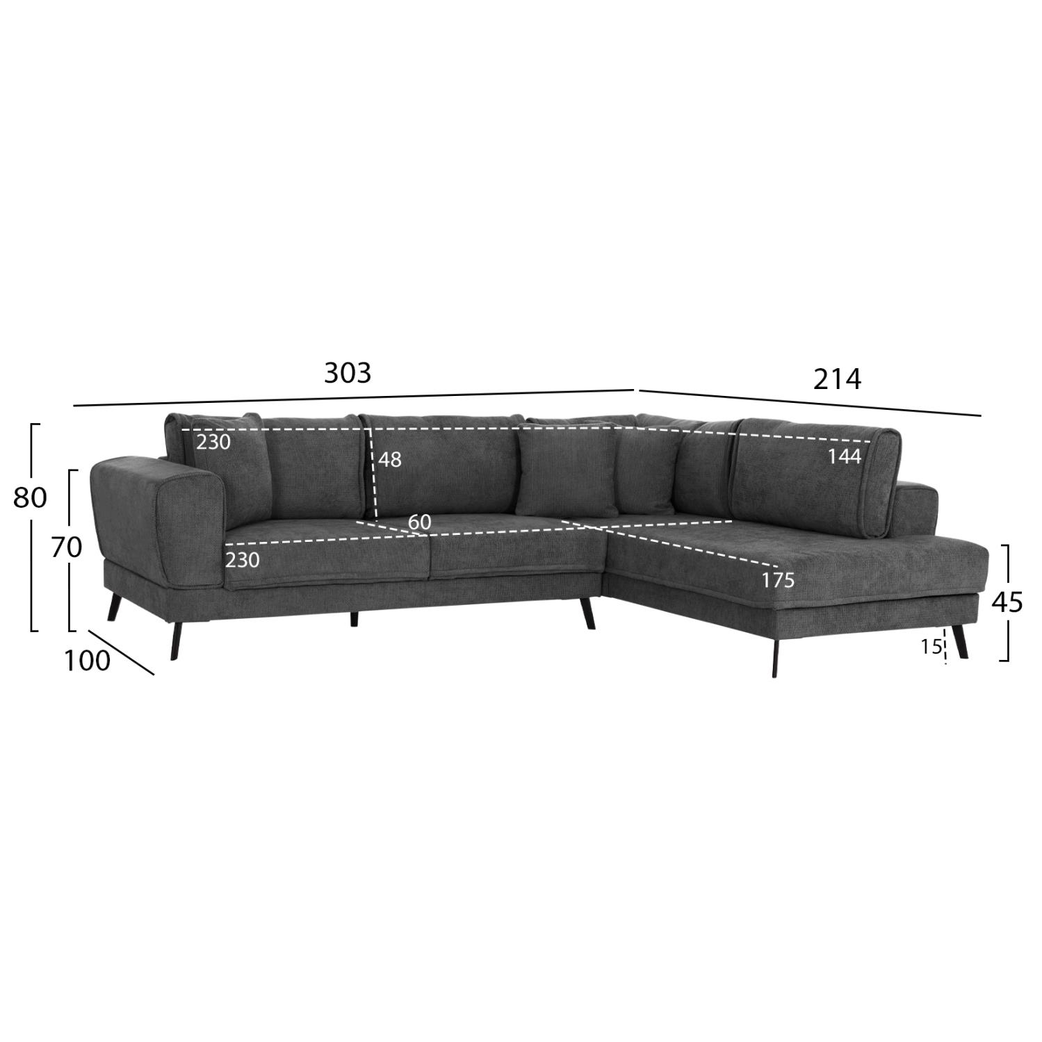 Γωνιακός Καναπές ZENORA Δεξιά γωνία σε Σκούρο Γκρί Ύφασμα 303x214x80Υεκ.