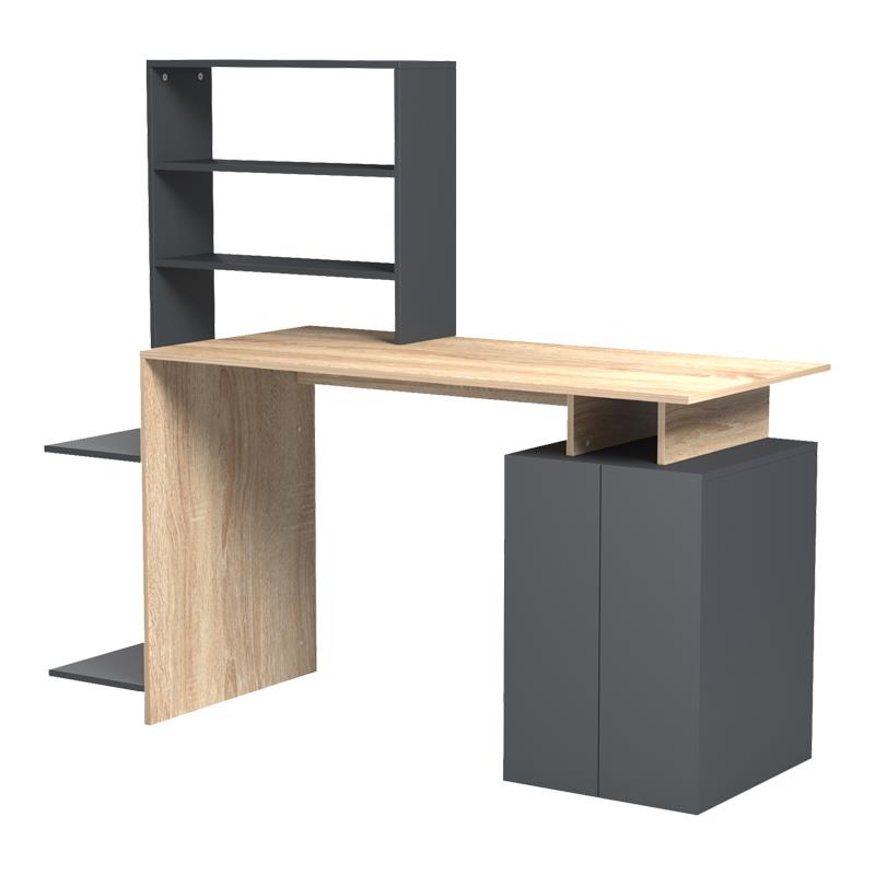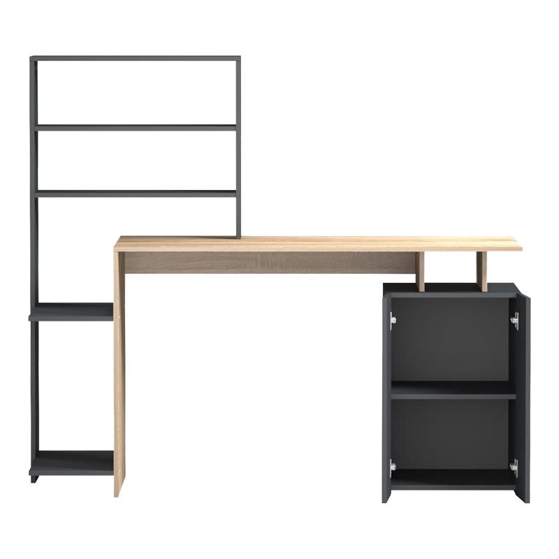 Το γραφείο εργασίας Meza συνδυάζει τη λειτουργικότητα και το σύγχρονο σχεδιασμό. Διαθέτει ένα ευρύχωρο γραφείο εργασίας, ιδανικό για υπολογιστή, μια ενσωματωμένη βιβλιοθήκη που προσφέρει άπλετο αποθηκευτικό χώρο για βιβλία, διακοσμητικά αντικείμενα ή φακέλους. Το μινιμαλιστικό του σχέδιο και τα ουδέτερα χρώματα το καθιστούν εύκολο να ταιριάξει σε οποιοδήποτε χώρο.