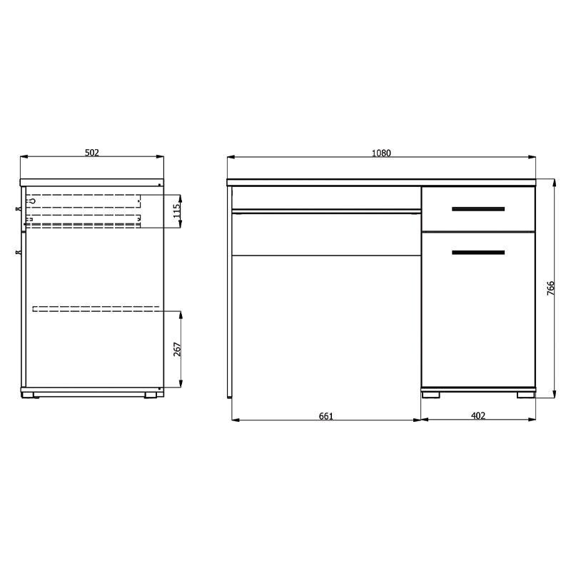 ΔιαστάσειςΠλάτος: 108, Βάθος: 50, Ύψος: 76.5 cm