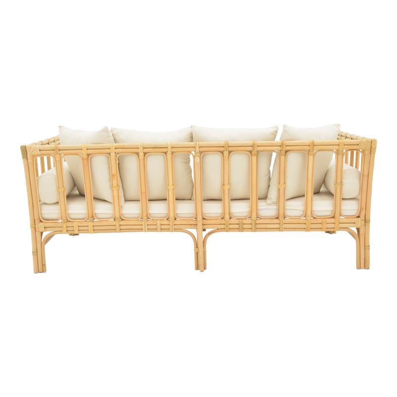 Καναπές Alessa φυσικό rattan-λευκό ύφασμα με μαξιλάρια 200x100x76εκ