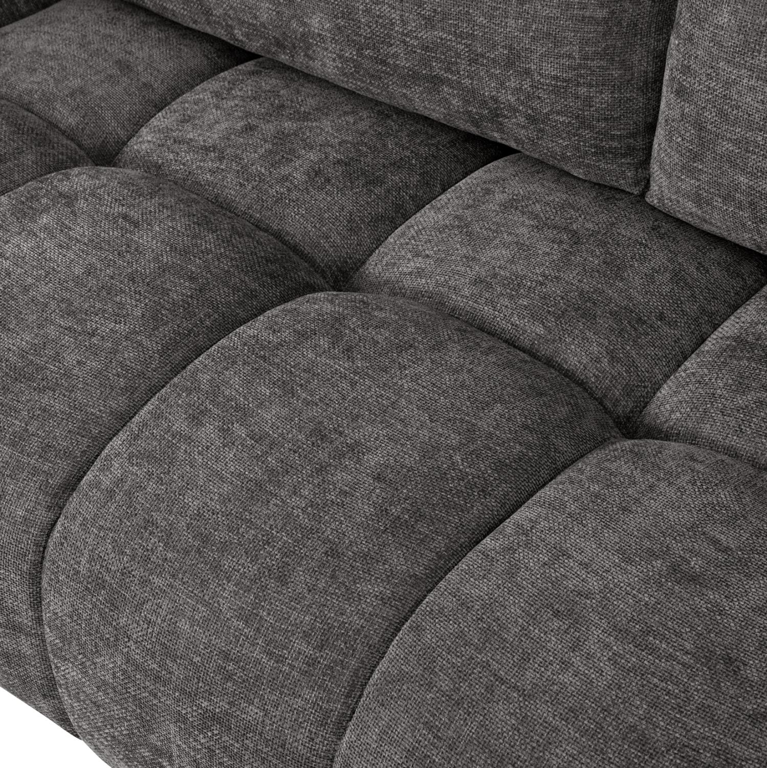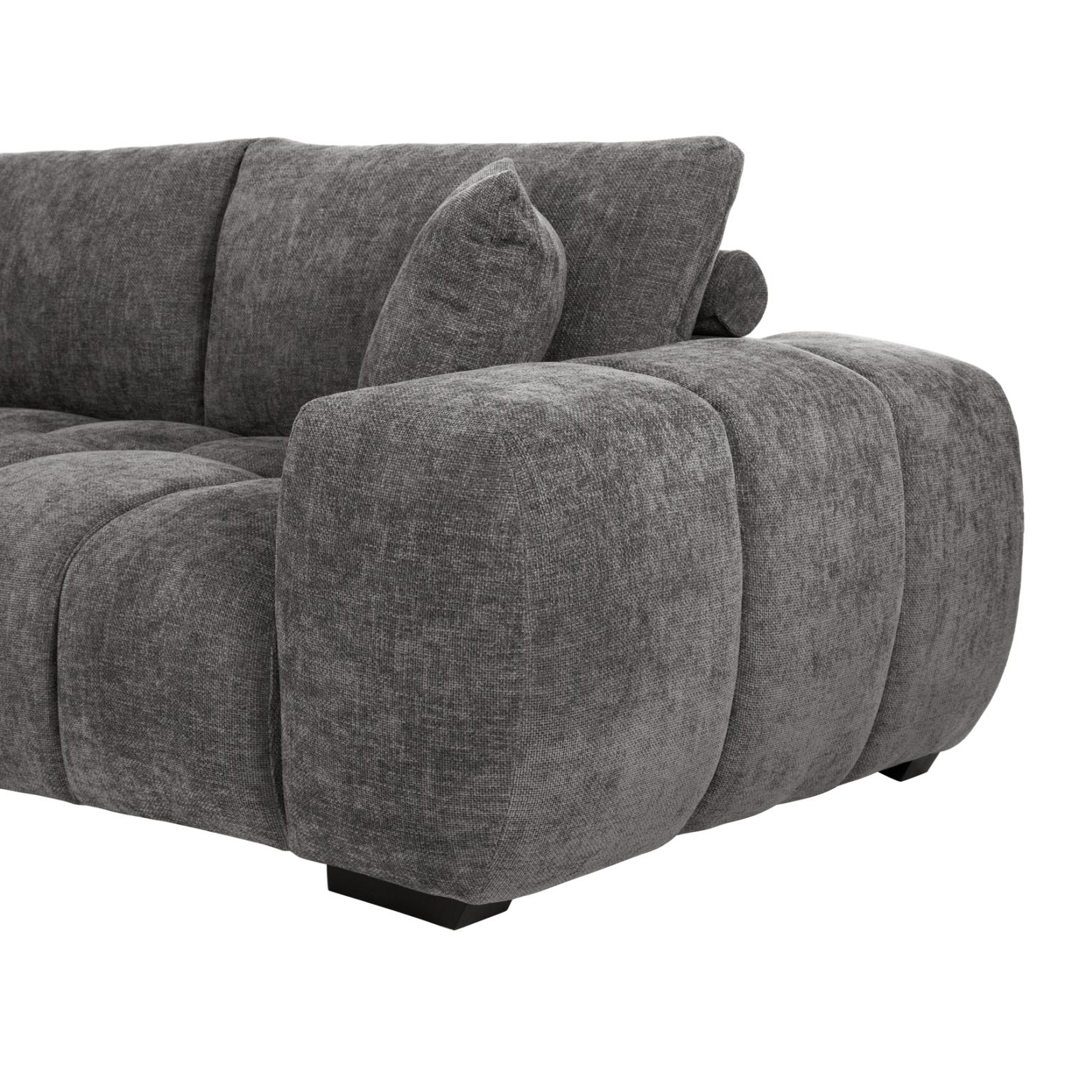 Σας παρουσιάζουμε τον COVEN, έναν υπέροχο μεγάλο καναπέ σε διαμόρφωση ΑΡΙΣΤΕΡΗΣ γωνίας (όπως τον κοιτάς) επενδυμένο με ποιοτικό ύφασμα σε ΣΚΟΥΡΟ ΓΚΡΙ χρώμα. Ξεκινώντας από το design, ο καναπές φτάνει μέχρι πολύ χαμηλά σε στυλ «ποδιάς» και διαθέτει φαρδιά χαμηλά πόδια-βάσεις σε μαύρο χρώμα. Τα μπράτσα είναι εντυπωσιακά φαρδιά, ενώ η επένδυση είναι σε στυλ καπιτονέ με τις έντονες ραφές! Το κομμάτι που σχηματίζει την γωνία είναι ίδιας αισθητικής και ενώνεται με τον κυρίως καναπέ με κατακόρυφους αναρτήρες πάνελ. Η πλάτη είναι χαμηλή και διαθέτει 4 μαξιλάρια πλάτης με «καραμέλες»(μακρόστενα κυλινδρικά μαξιλάρια) στο πίσω μέρος τους για καλύτερη στήριξη, αλλά και 3 μικρότερα διακοσμητικά μαξιλαράκια. Το κάθισμα διαθέτει γεμίσματα αφρού μεσαίας σκληρότητας σε συνδυασμό με ελατήρια pocket springs, προσφέροντας απαράμιλλη άνεση. Και φυσικά, σας προσφέρουμε αυτόν τον καναπέ με εγγύηση σκελετού 3 ετών!