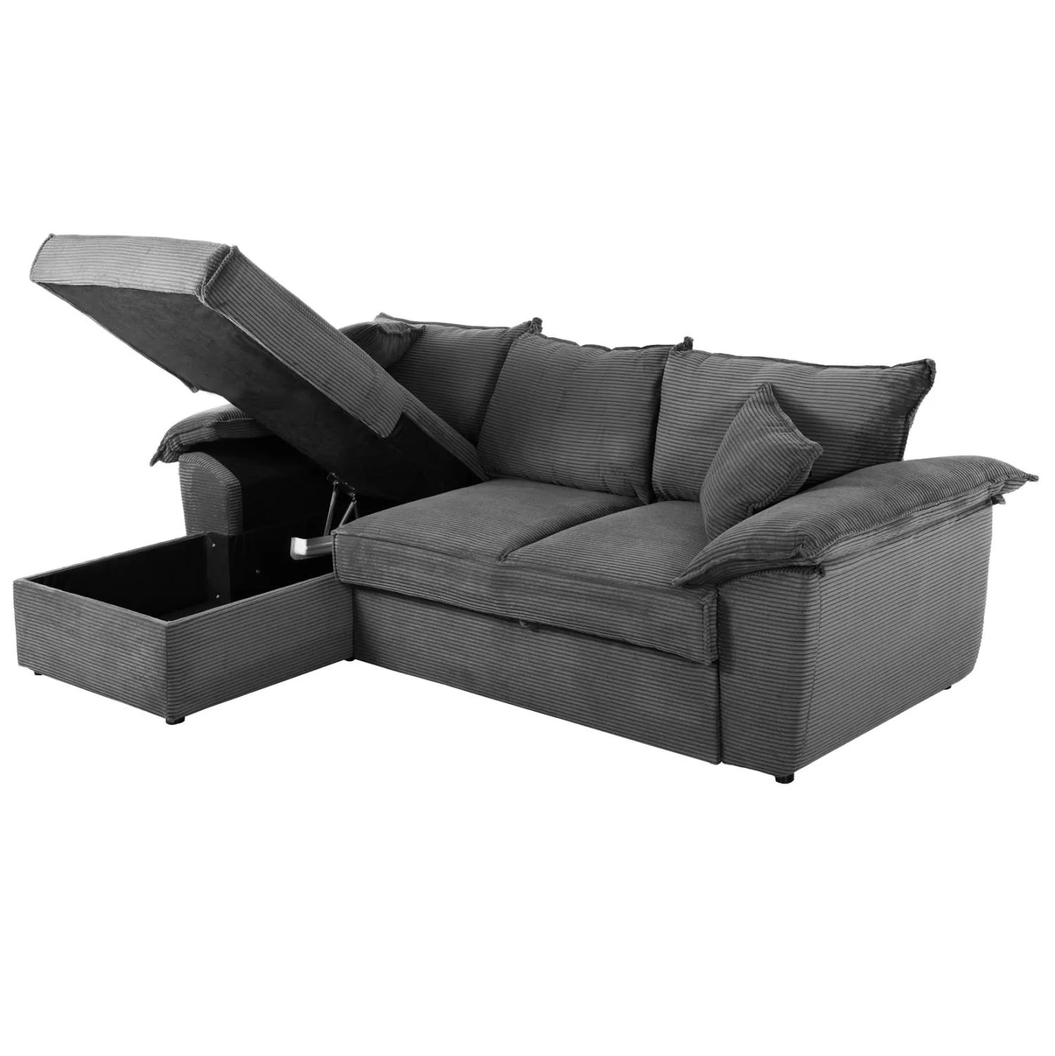 Γωνιακός Καναπές – Κρεβάτι ALDO Αριστερή γωνία με Αποθηκευτικό χώρο Ύφασμα Ανθρακί 256x159x87Υεκ.