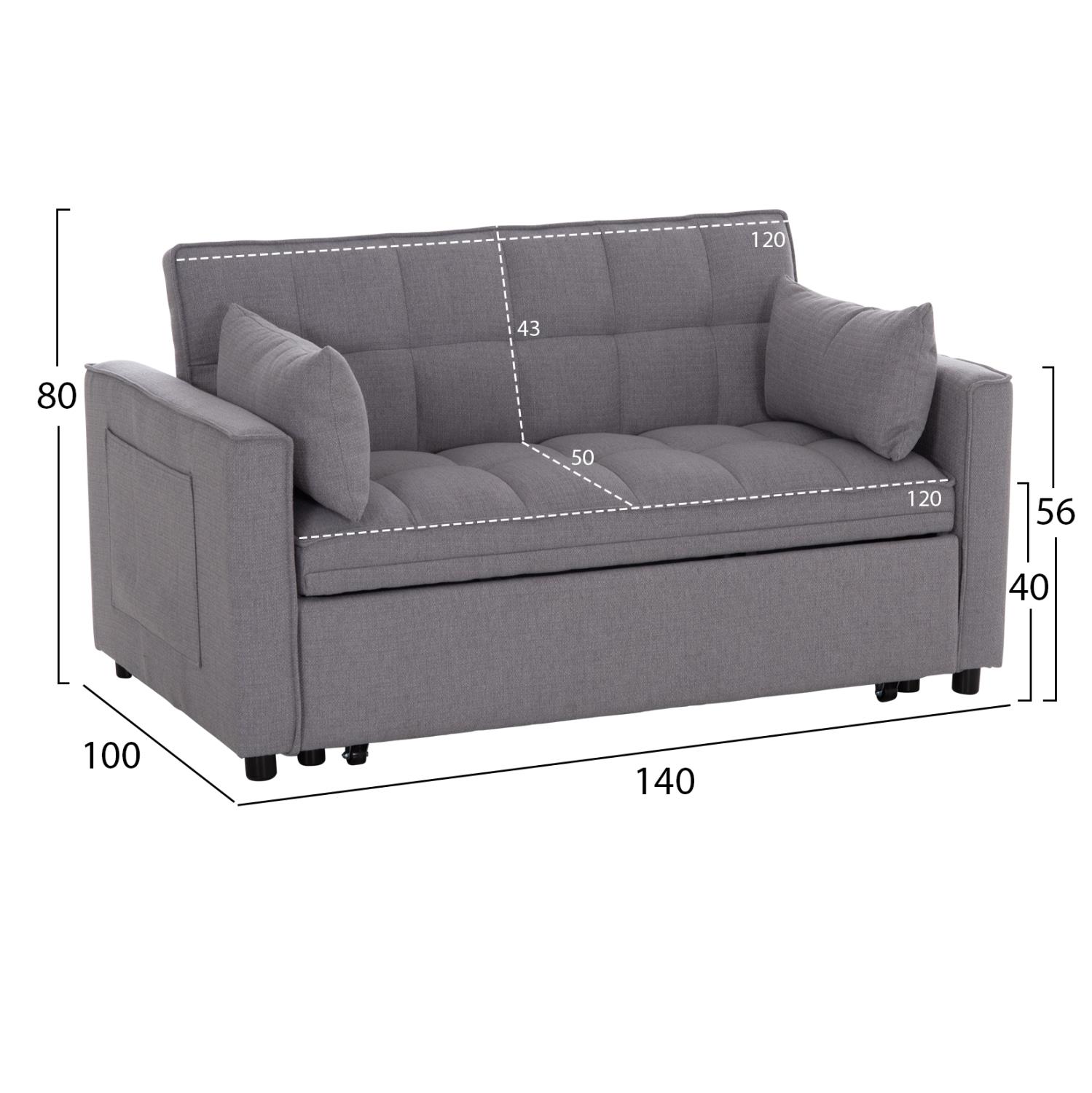 Ο διθέσιος καναπές BORG είναι ποιοτικός και πρακτικός. Έχει πολύ χαμηλά πόδια ενώ τα μπράτσα του διαθέτουν θήκες («τσέπες») στο εξωτερικό τους για πρόχειρη τοποθέτηση διάφορων αντικειμένων. Είναι επενδυμένος με ποιοτικό ύφασμα σε ΓΚΡΙ χρώμα και συνοδεύεται από δύο πλαϊνά μαξιλαράκια. Αυτό που τον κάνει όμως να ξεχωρίζει είναι ότι μετατρέπεται σε κρεβάτι πολύ εύκολα τραβώντας προς τα έξω με δύο ιμάντες το αναδιπλούμενο κρεβάτι που βρίσκεται κάτω από το κάθισμα.