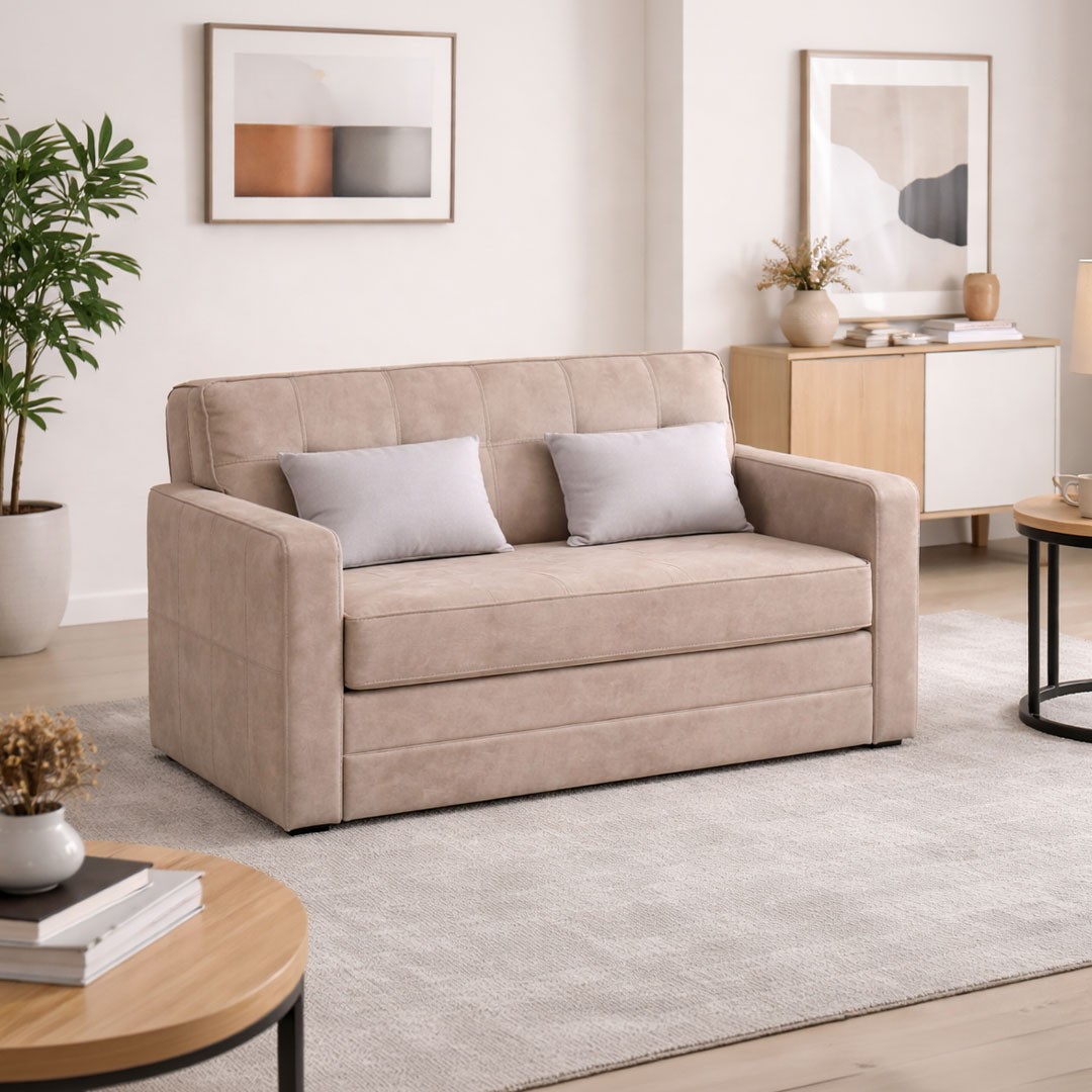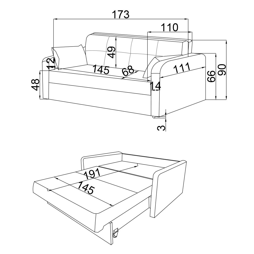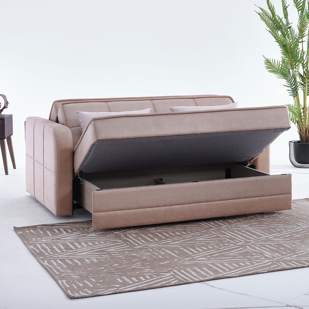 Διαθέτει αναδιπλούμενο μηχανισμό κρεβατιού, με εύκολο και πρακτικό άνοιγμα και κλείσιμο, επιτρέποντάς σας να τον μετατρέψετε γρήγορα σε ένα άνετο διπλό κρεβάτι διαστάσεων 145x190 εκ. Το κάθισμά του είναι κατασκευασμένο από αφρώδες υλικό υψηλής ποιότητας και πυκνότητας, εξασφαλίζοντας άνεση και σωστή στήριξη τόσο κατά τη χρήση ως καναπές όσο και ως κρεβάτι.