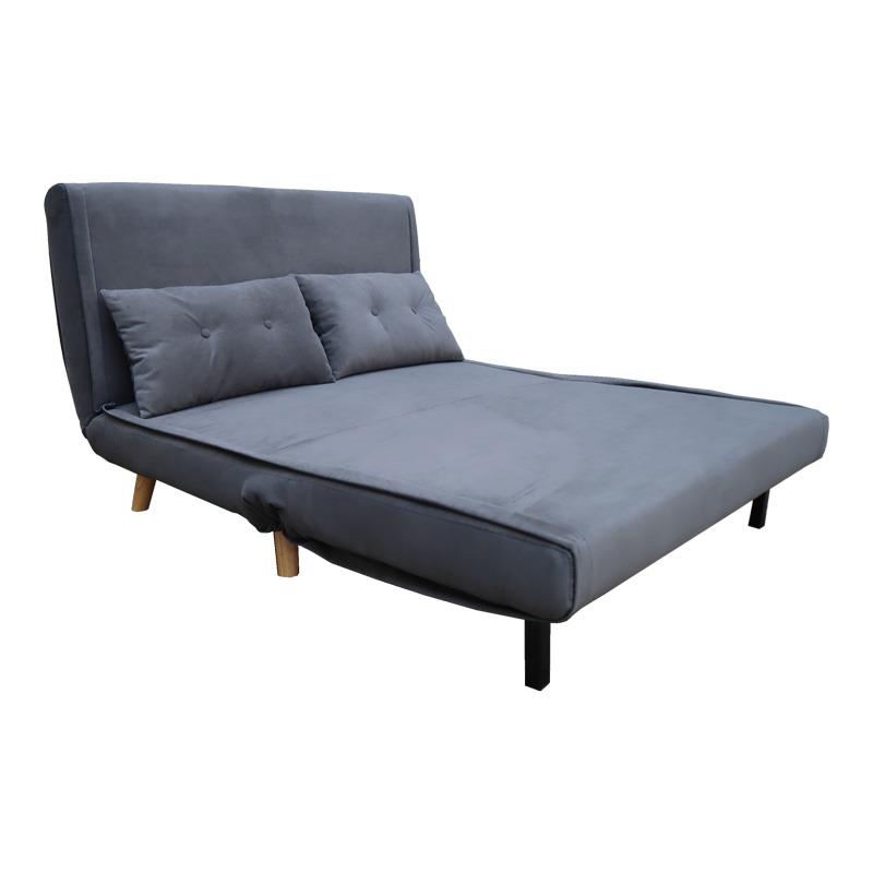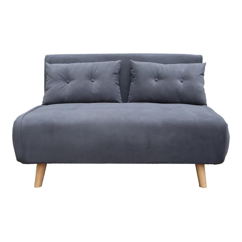 Καναπές-κρεβάτι Josuane διθέσιος ανθρακί βελούδο και ξύλινο πόδι σε φυσική απόχρωση 122x80x81εκ