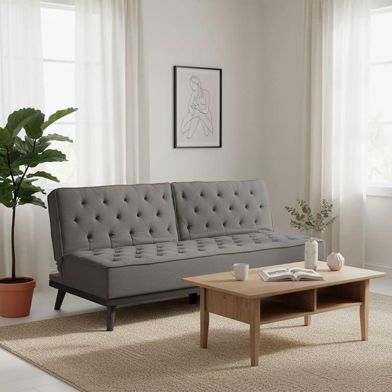 - Φέρει εύχρηστο μεταλλικό μηχανισμό «click-clack» που με μία μόνο κίνηση μετατρέπει τον καναπέ σε κρεβάτι και το αντίστροφο.