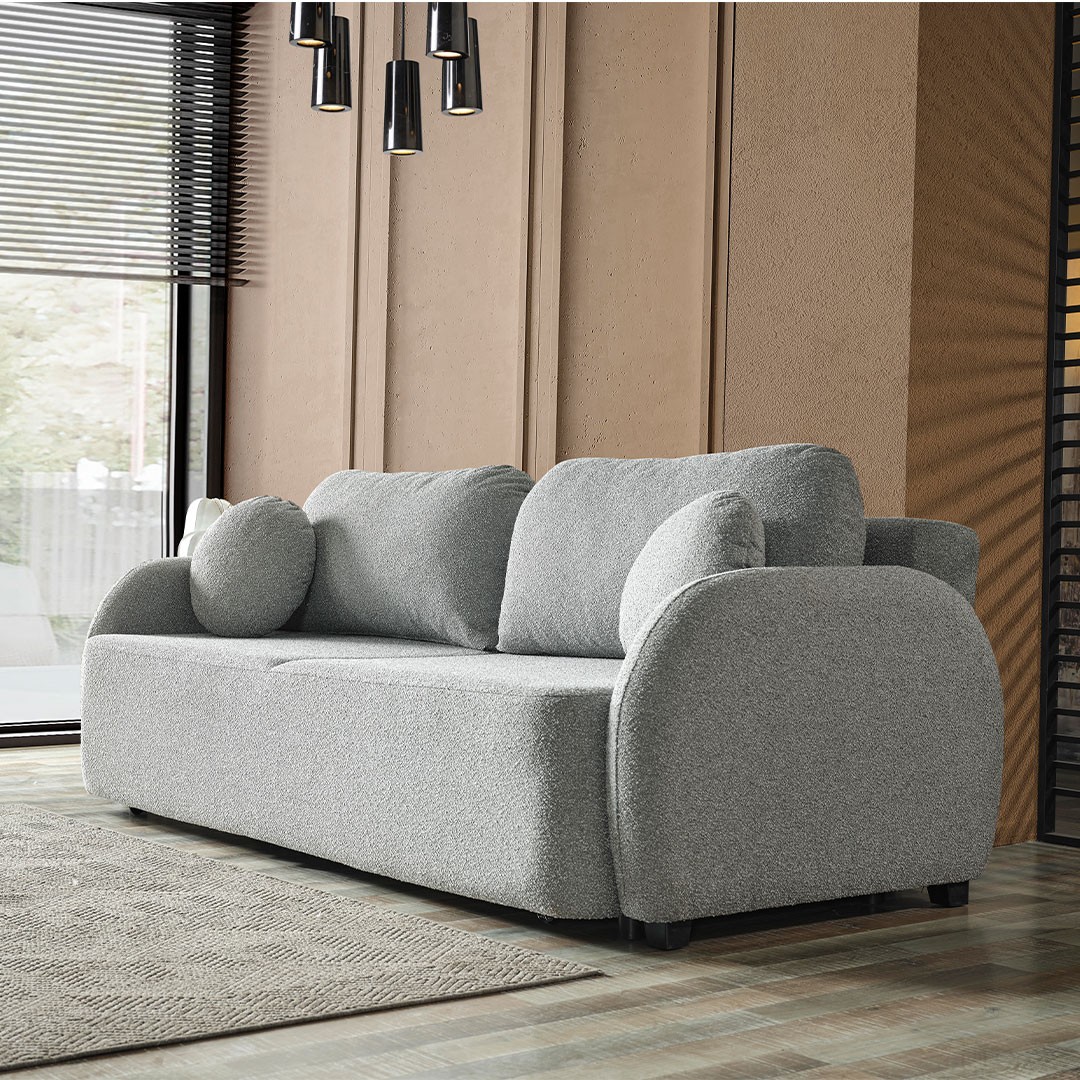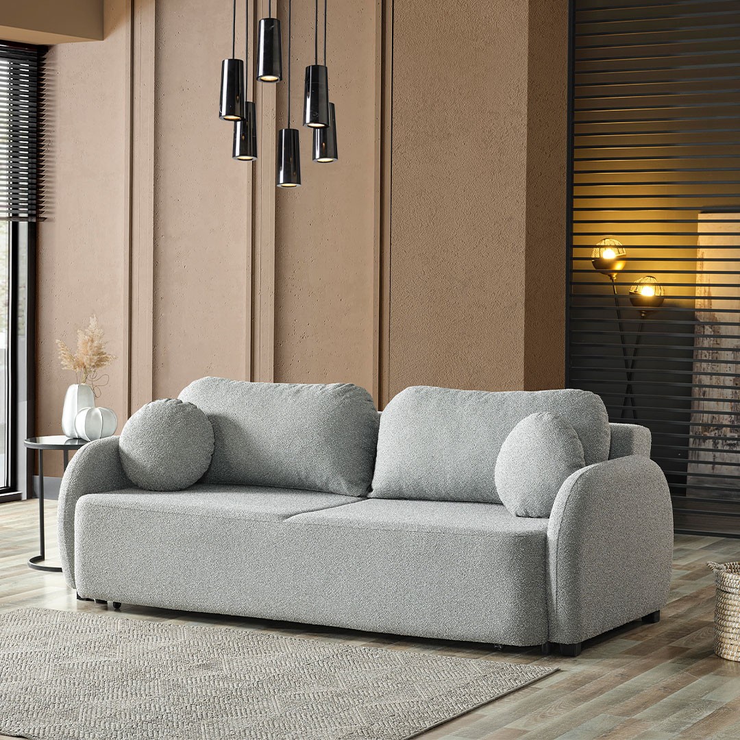 Παράλληλα, διαθέτει ευρύχωρο αποθηκευτικό χώρο με ενισχυμένο πάτωμα, ιδανικό για την αποθήκευση των διακοσμητικών μαξιλαριών, λευκών ειδών και άλλων απαραίτητων αντικειμένων, συμβάλλοντας στην καλύτερη οργάνωση του χώρου σας. Πρόκειται για έναν τριθέσιο καναπέ που προσαρμόζεται εύκολα σε κάθε περιβάλλον, αποτελώντας ιδανική επιλογή για ενοικιαζόμενα καταλύματα, εξοχικές κατοικίες ή ακόμα και για το σαλόνι του σπιτιού σας, συνδυάζοντας στυλ και λειτουργικότητα.