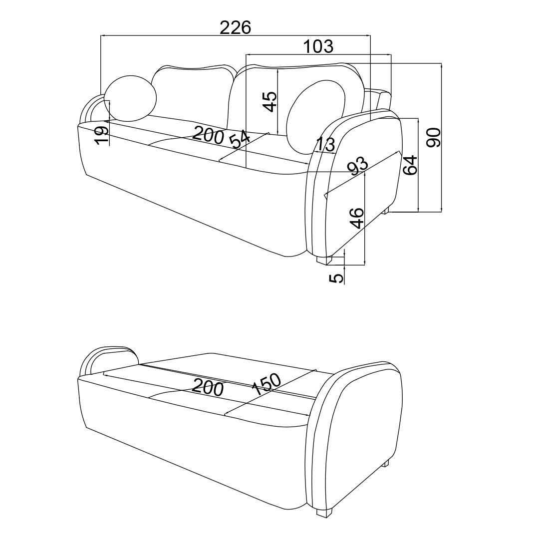 Πλάτος: 226, Βάθος: 103, Ύψος: 90 cm