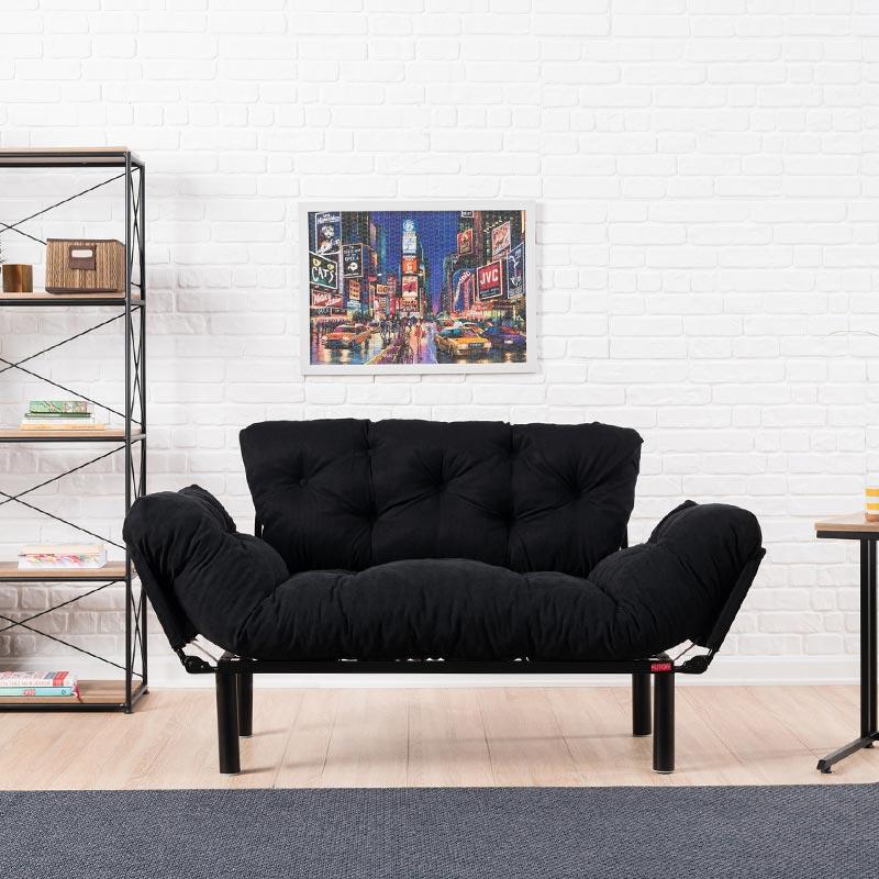 Καναπές κρεβάτι C-0018 2θέσιος με ύφασμα χρώμα μαύρο 155x73x85cm