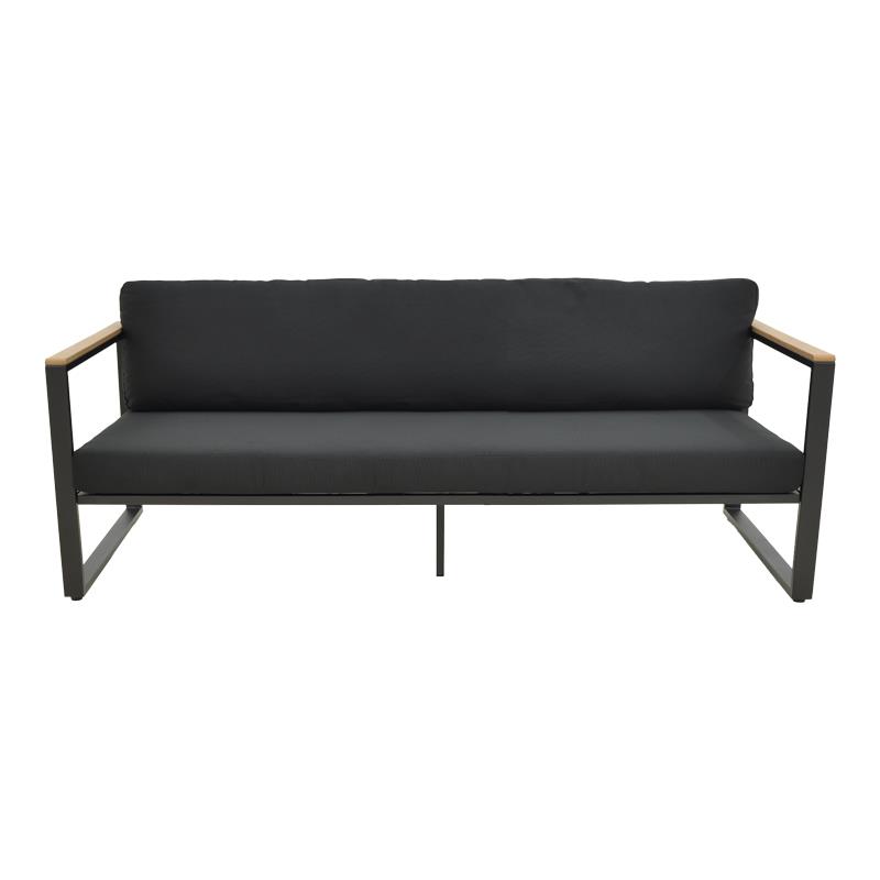 Αναβαθμίστε τον εξωτερικό ή εσωτερικό σας χώρο με τον 3θέσιο καναπέ Aurelio. Με στιβαρό ατσάλινο σκελετό και κομψές, μοντέρνες γραμμές, συνδυάζει στυλ, άνεση και μακροχρόνια αντοχή. Τα μπράτσα με επένδυση plywood προσθέτουν μια φυσική πινελιά, ενώ τα πλούσια μαξιλάρια εξασφαλίζουν μια premium εμπειρία καθίσματος.