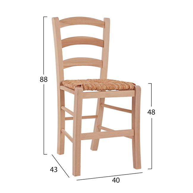 Καρέκλα Άβαφη ΠΑΡΟΣ Μασίφ Ξύλο Οξιάς με Ψάθα
