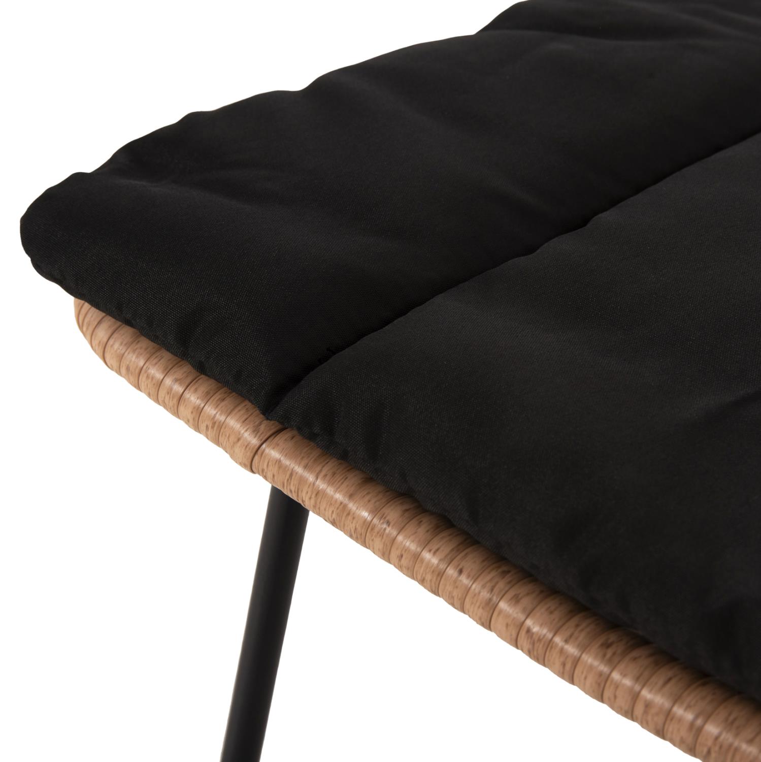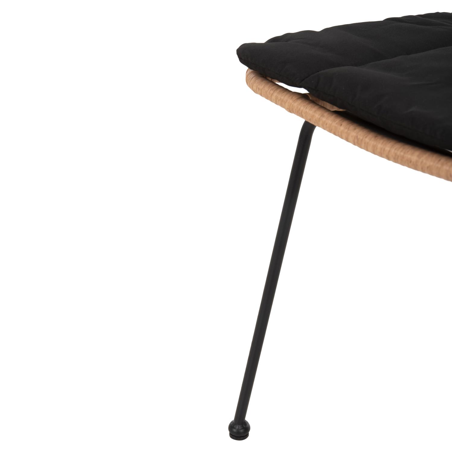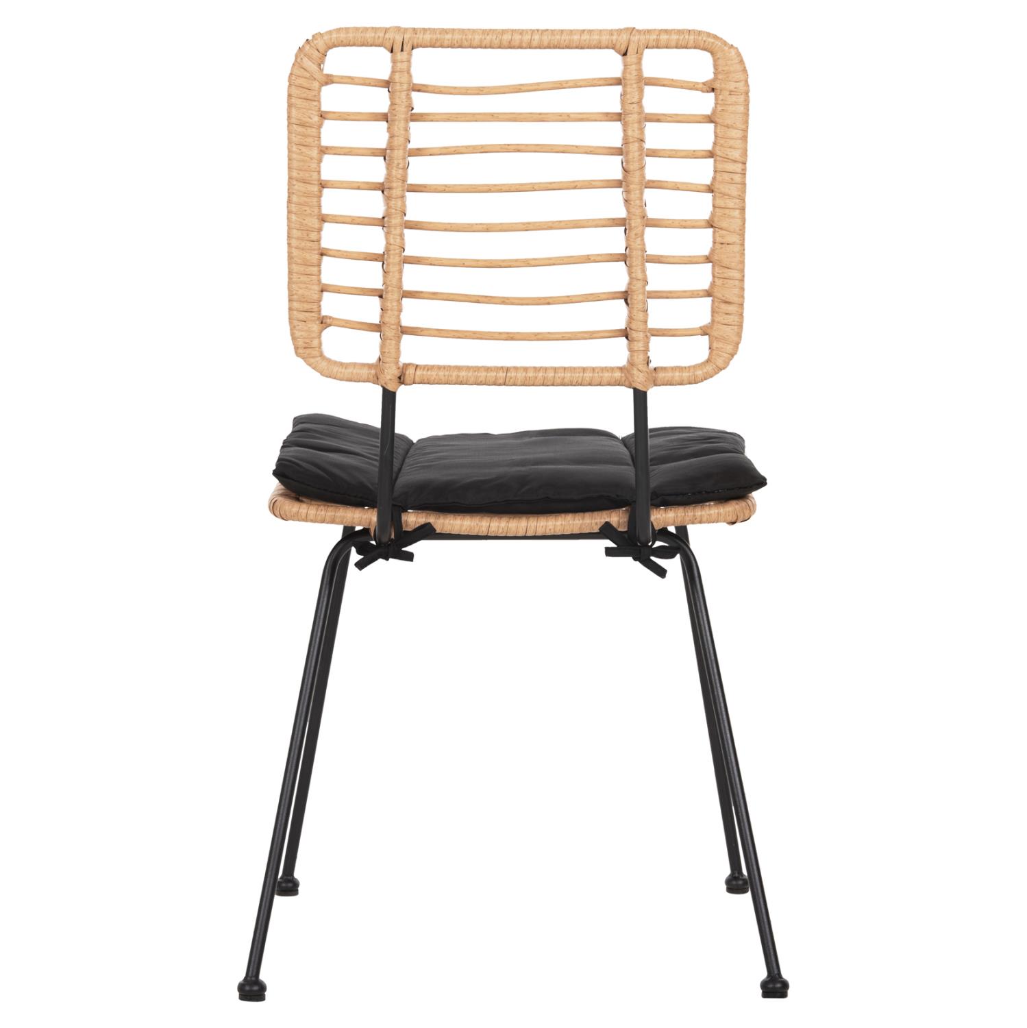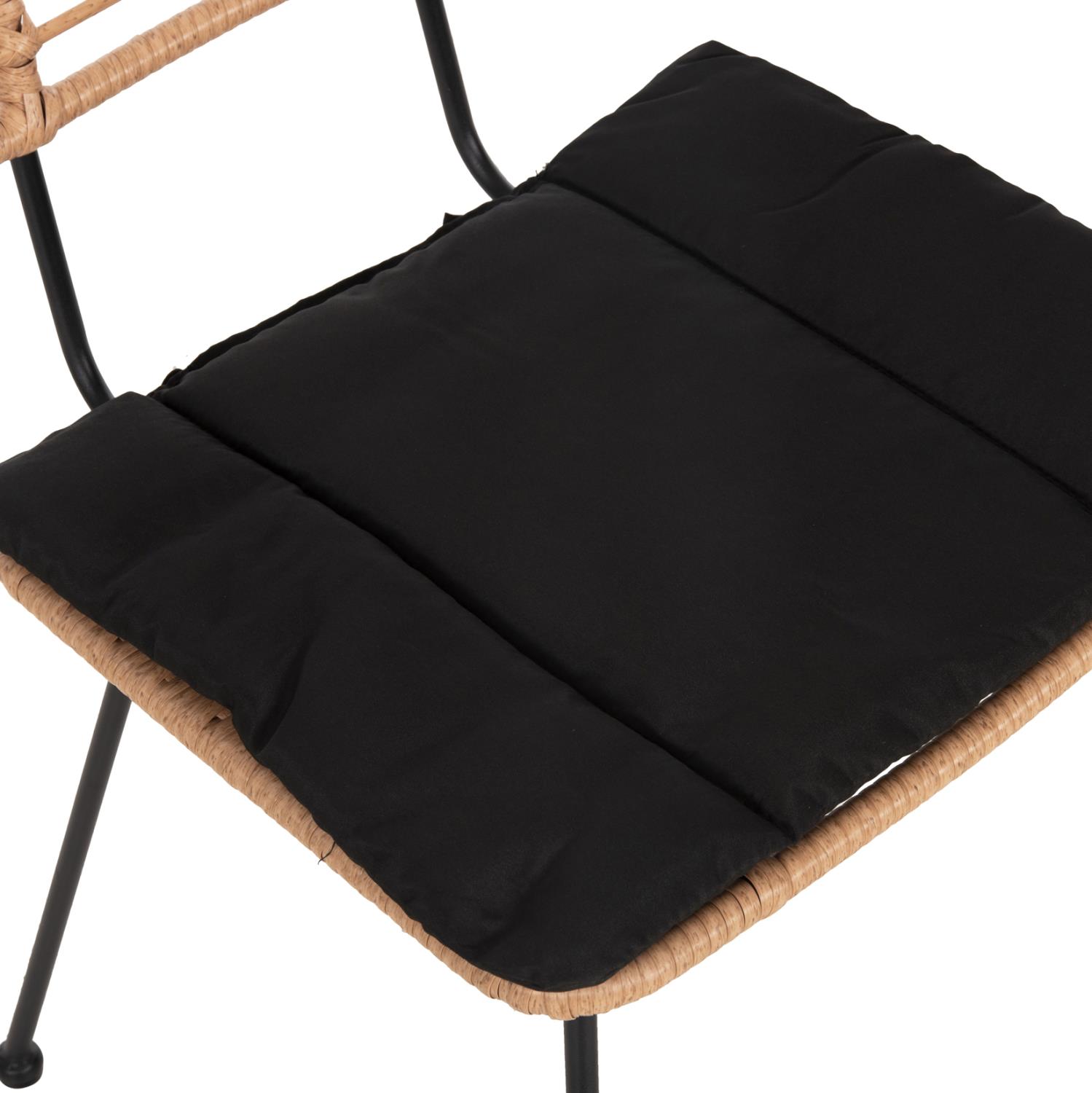 Το κάθισμα της καρέκλας είναι από συνθετικό Rattan σε πλέξη wicker. Στα περισσότερα έπιπλα κήπου και γενικά σε έπιπλα για εξωτερικούς χώρους χρησιμοποιείται συνθετικό Rattan από PVC, δηλαδή τεχνητές ίνες υψηλής ποιότητας. Αυτό δίνει στην κατασκευή εξαιρετική αντοχή και ανθεκτικότητα σε ακραίες συνθήκες ζέστης ή κρύου.