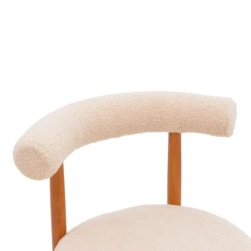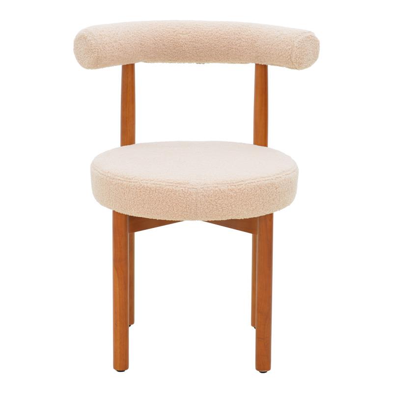 Καρέκλα Fenza μπεζ μπουκλέ ύφασμα-πόδι ξύλο οξιάς σε καρυδί απόχρωση 60x54x75εκ