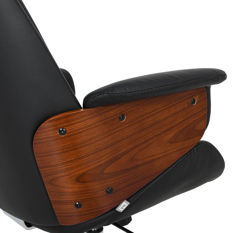 Η καρέκλα συνδυάζει το business look με μοντέρνο minimal design, καθιστώντας την κατάλληλη τόσο για αυστηρά επαγγελματικούς χώρους όσο και για design-oriented γραφεία ή κατοικίες. Οι ξύλινες λεπτομέρειες και το τεχνοδέρμα δημιουργούν ένα premium σύνολο που αποπνέει κύρος και αισθητική ισορροπία.