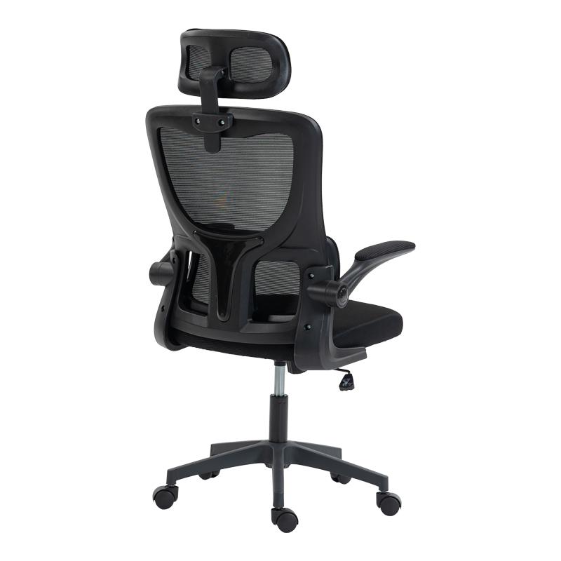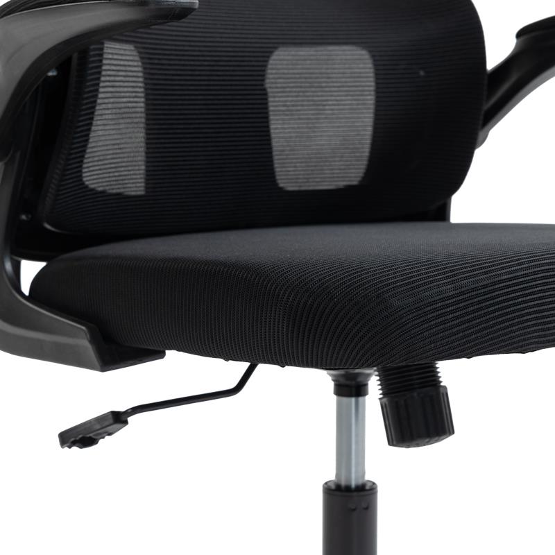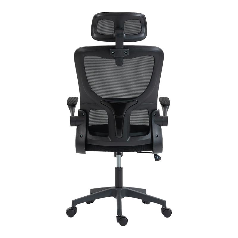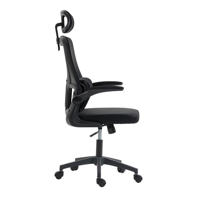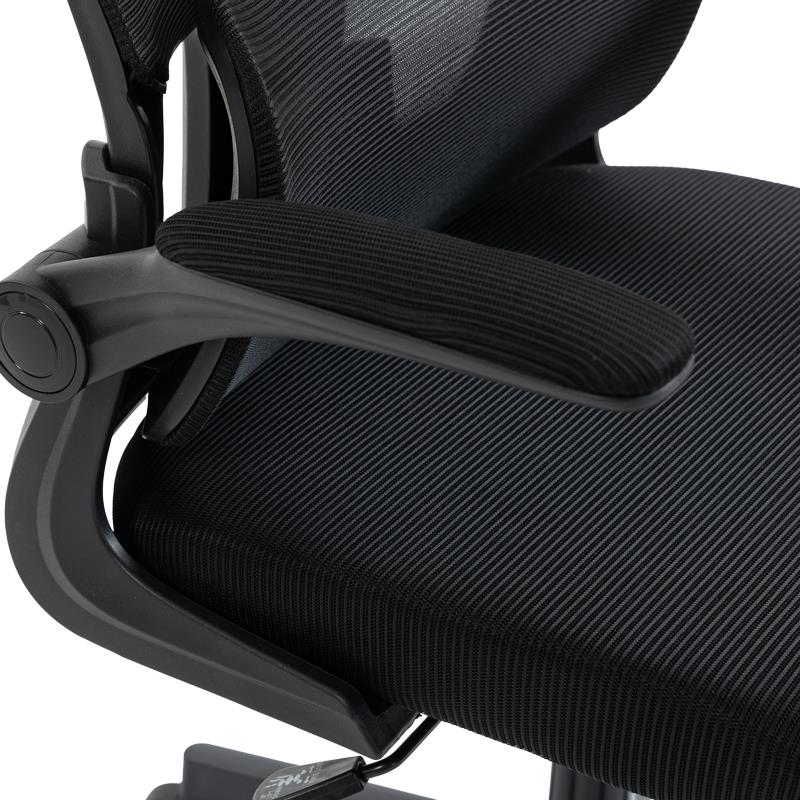 - Αποθήκευση & Ευελιξία: Τα μπράτσα τύπου flip-up επιτρέπουν την αναδίπλωση τους κατά 90°, δίνοντας τη δυνατότητα να σπρώξετε την καρέκλα εντελώς κάτω από το γραφείο, εξοικονομώντας έτσι χώρο όταν δεν χρησιμοποιείται.